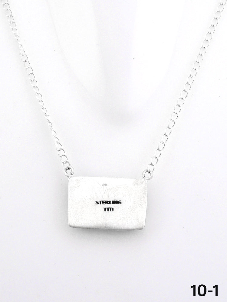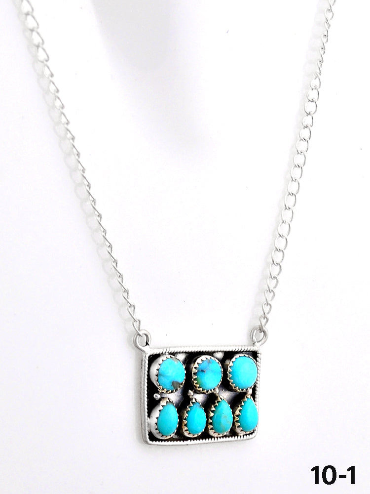 Southwest Made Kingman Turquoise & Sterling Silver Necklace.  It measures 20 inches long with hang while the chain measures 18 inches long. Signed by the artist and stamped sterling silver.