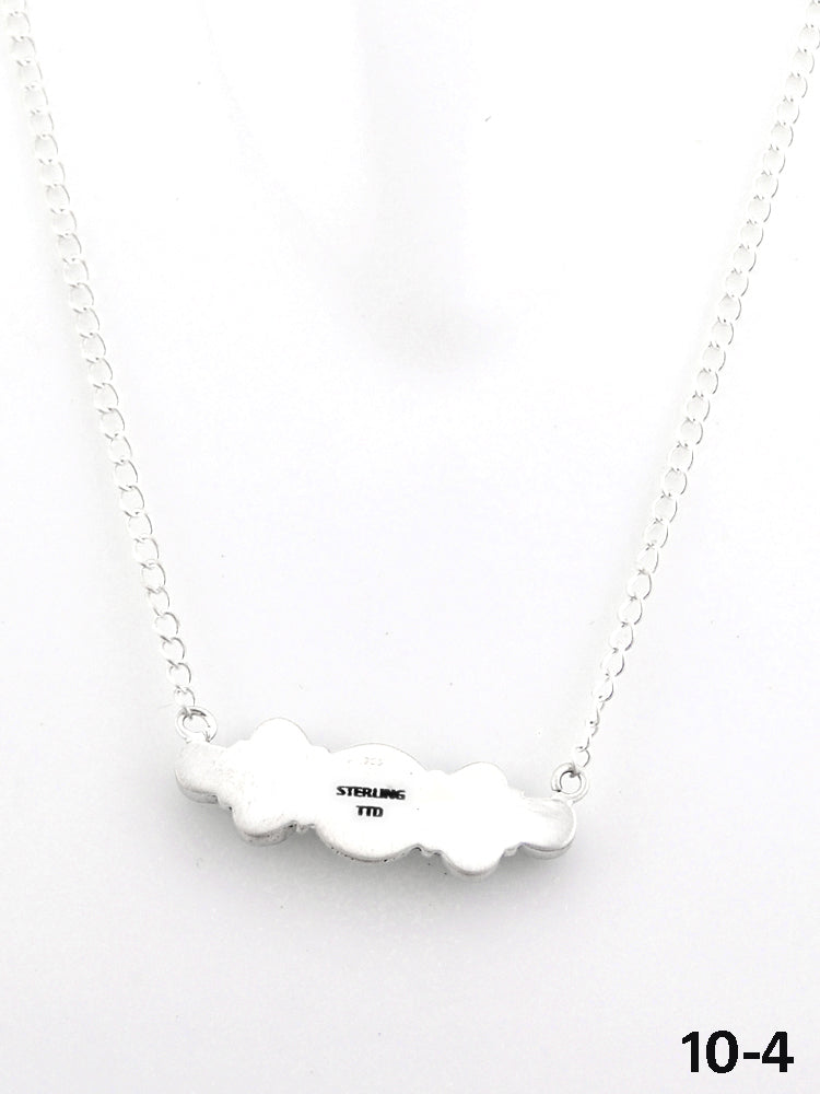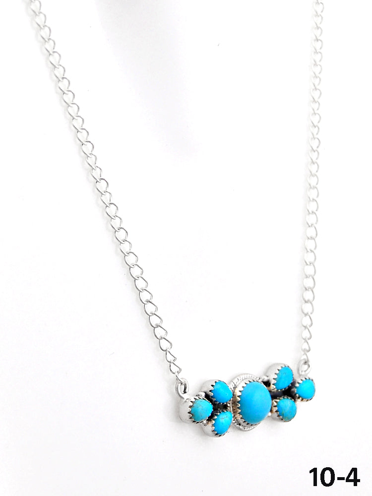 Southwest Made Kingman Turquoise & Sterling Silver Necklace.  It measures 20 inches long with hang while the chain measures 18 inches long. Signed by the artist and stamped sterling silver.