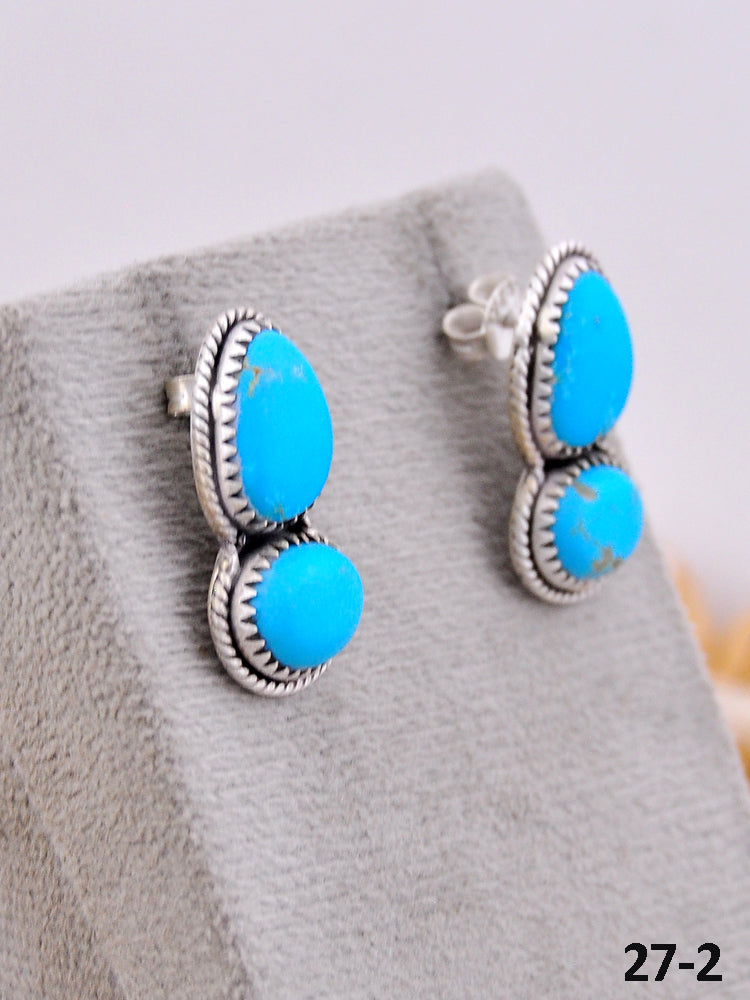 Southwest Made Kingman Turquoise & Sterling Silver Post Earrings