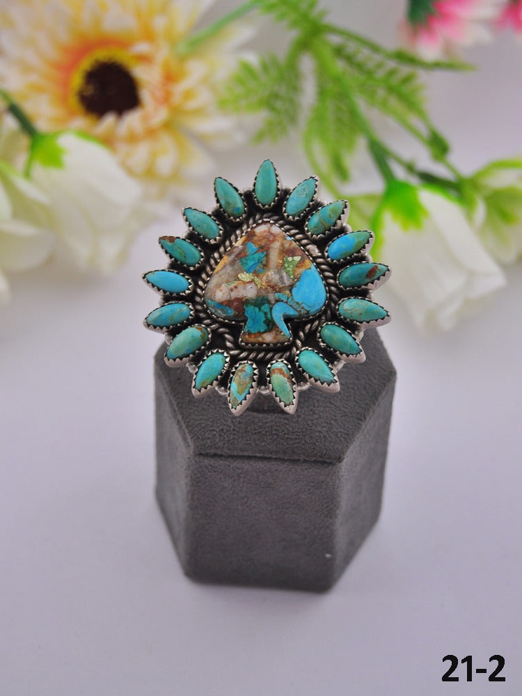 Southwest Made Multi Stone & Sterling Sliver Cluster Adjustable Ring