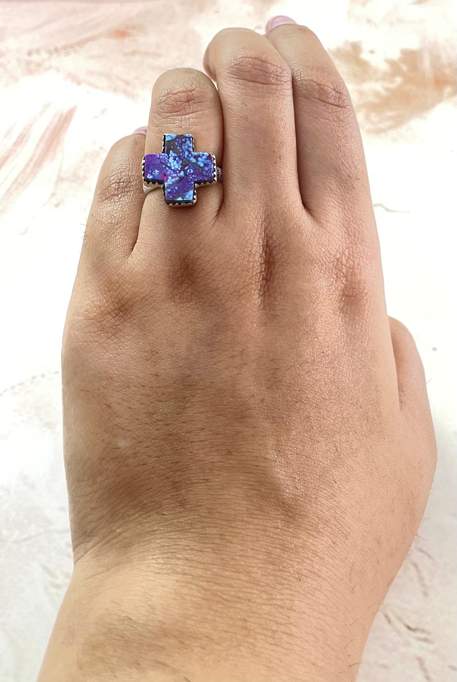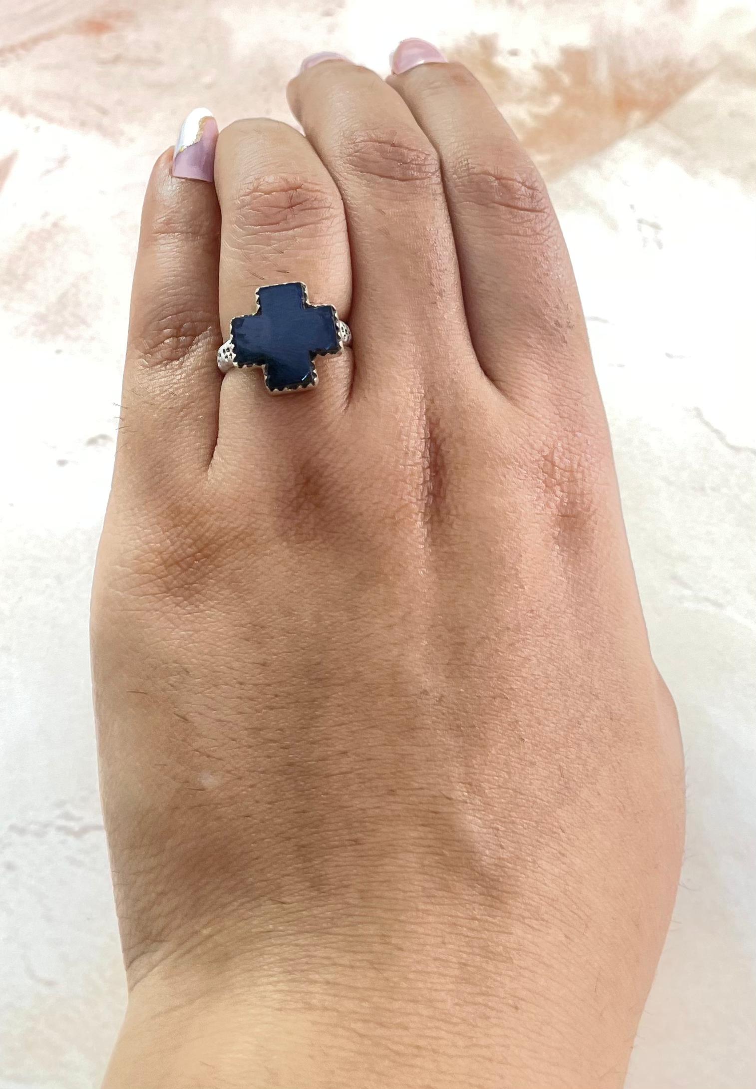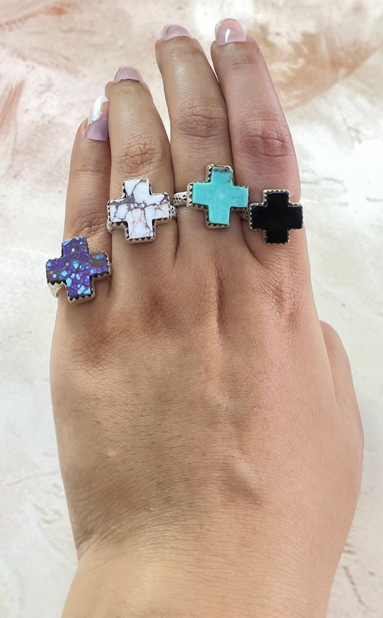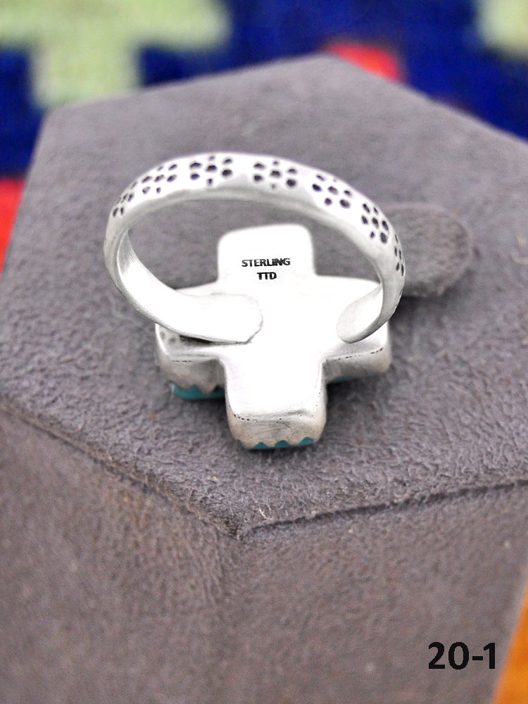 Southwest Made Multistone Cross & Sterling Silver Adjustable Ring