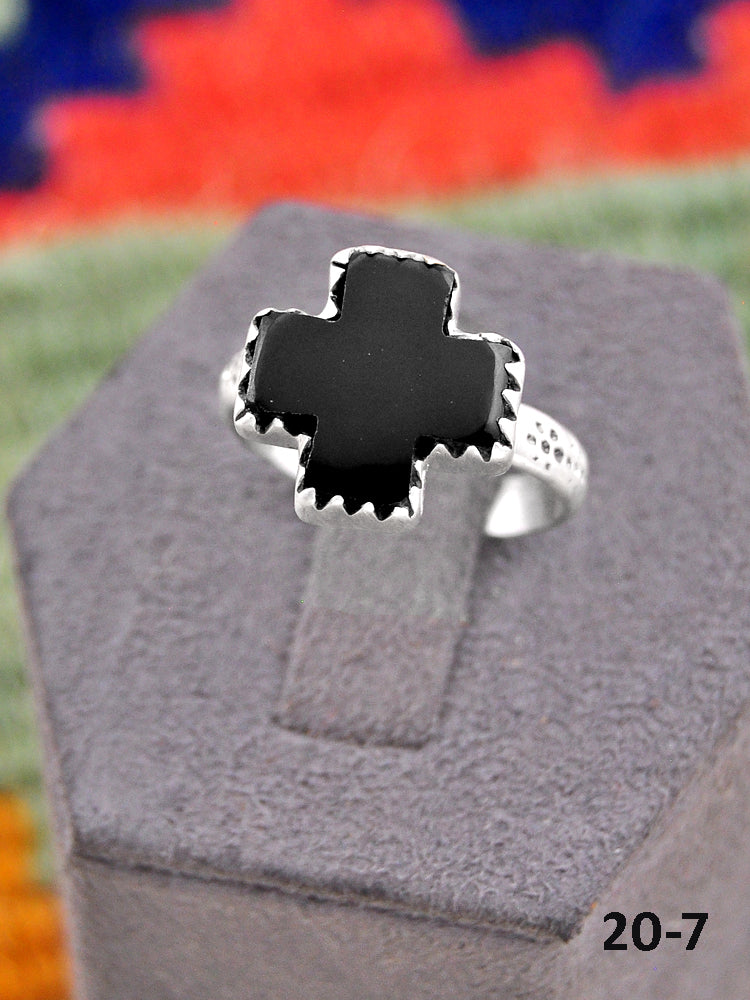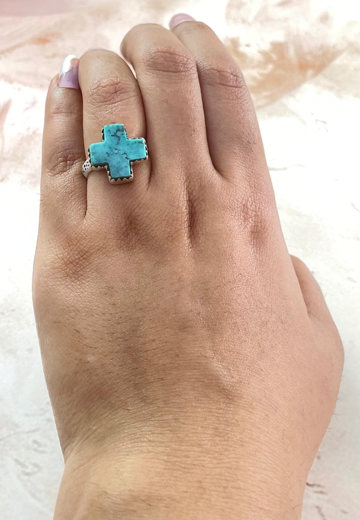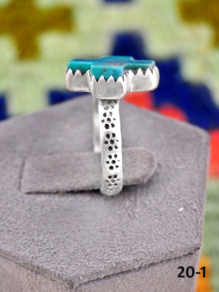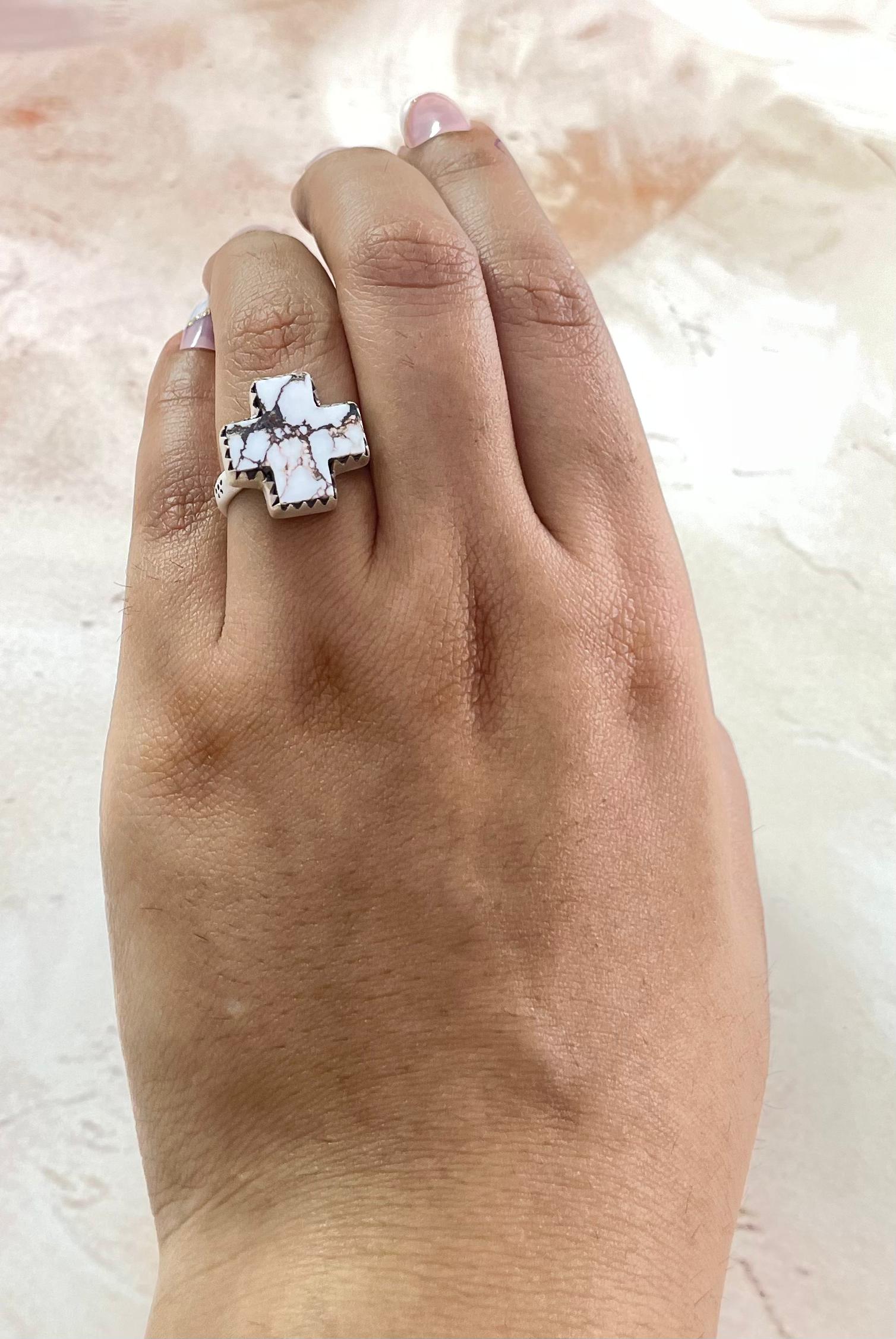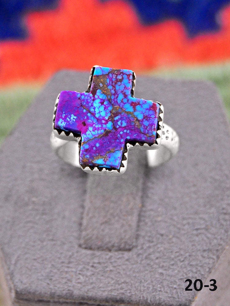 Southwest Made Multistone Cross & Sterling Silver Adjustable Ring