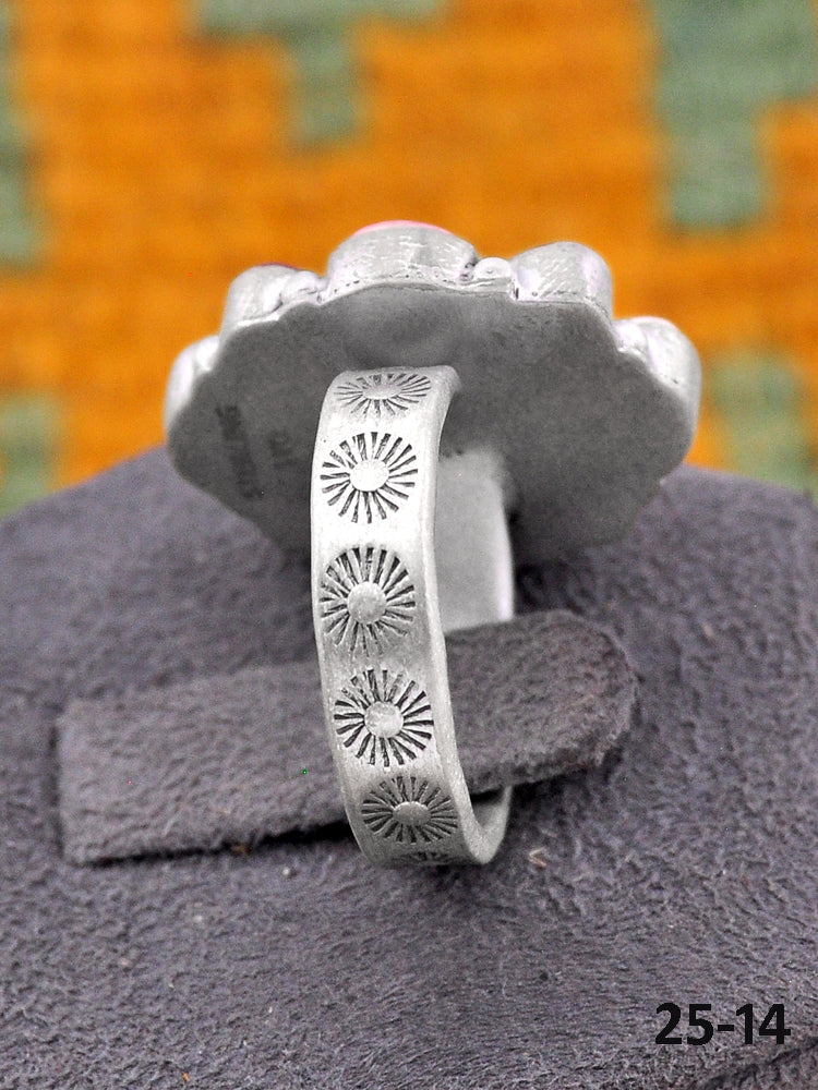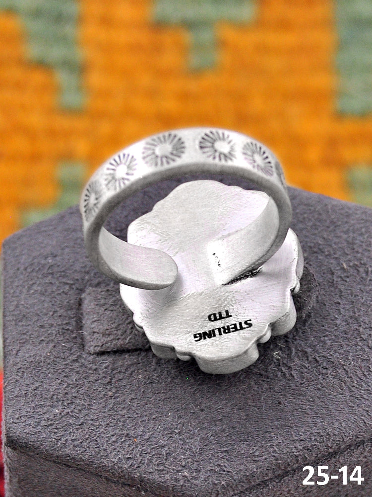 Southwest Made Multi Stone & Sterling Sliver Adjustable Ring. It measures 1 of an inch long and 7/8 of an inch wide. Signed by the artist and stamped sterling silver.