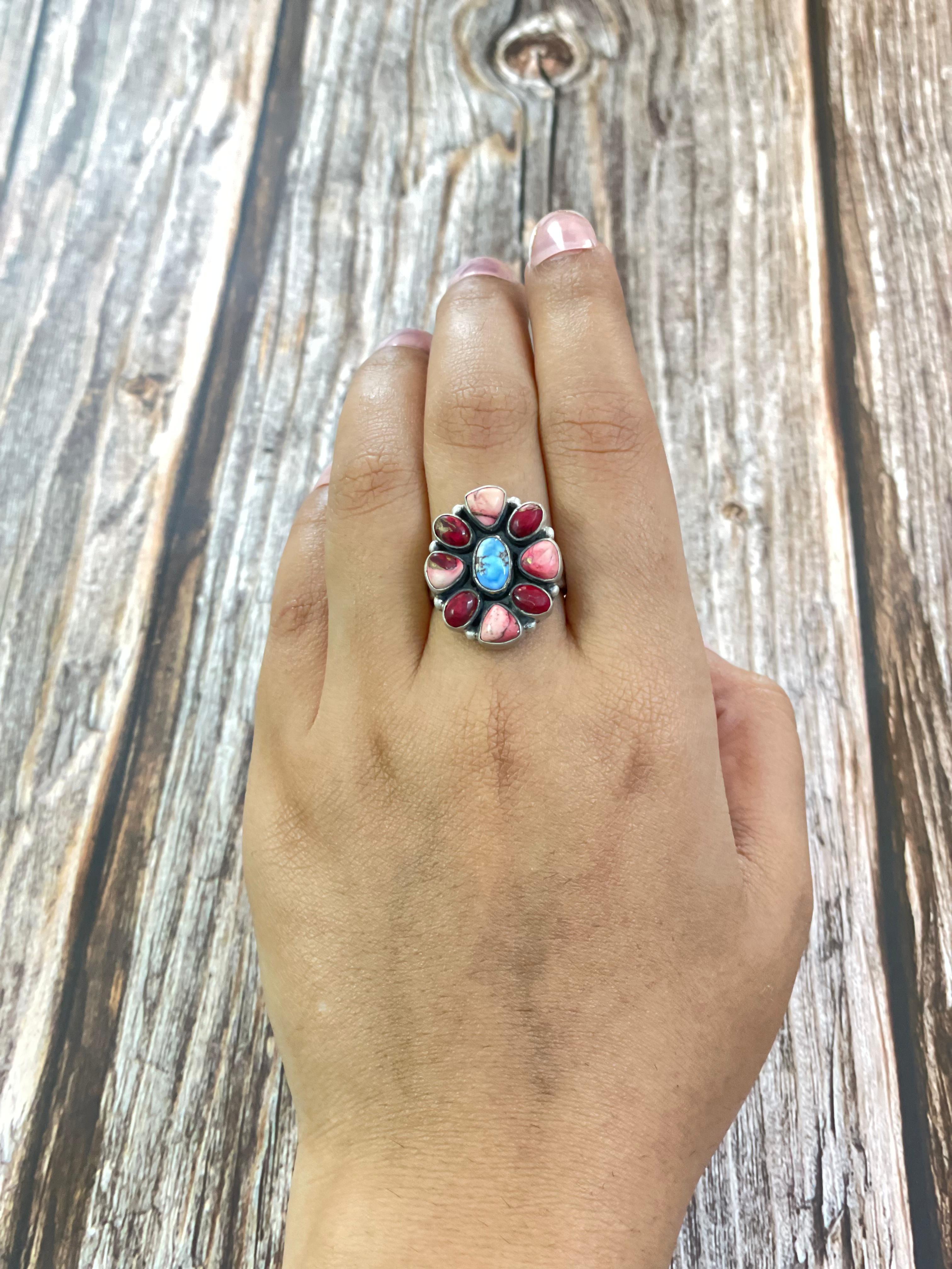 Southwest Made Multi Stone & Sterling Silver Adjustable Ring