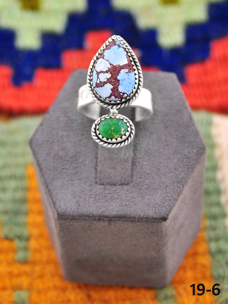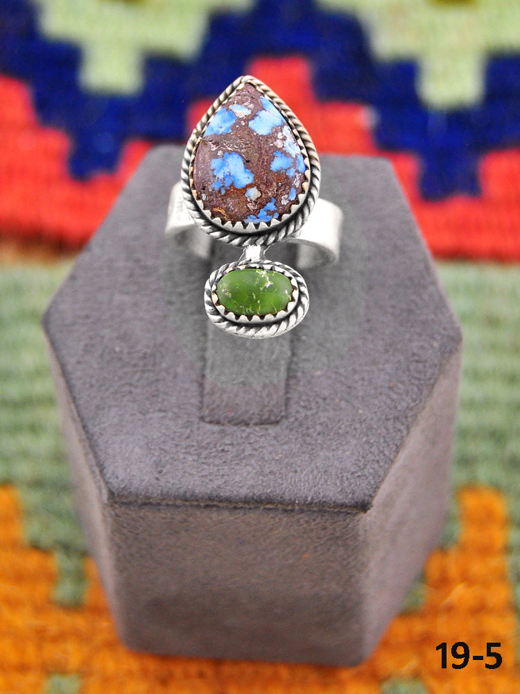 Southwest Made Multi Stone & Sterling Silver Adjustable Ring