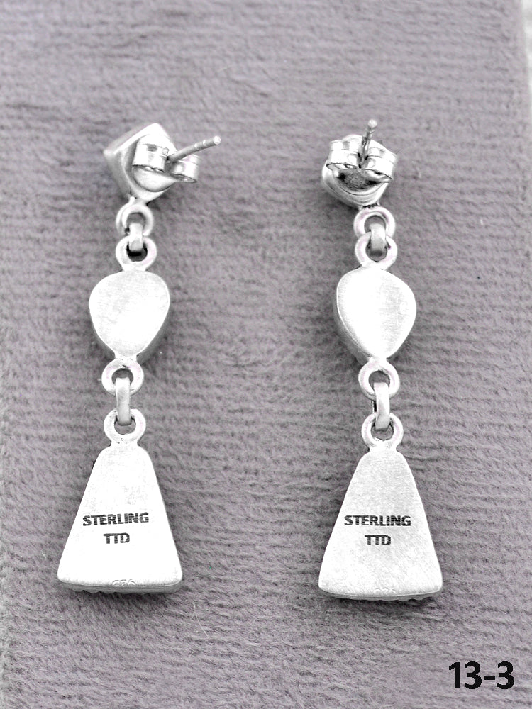 Southwest Made Multi Stone & Sterling Silver Post Earrings. It measures 2 inches long and 1/2 of an inch wide. Stamped and signed.