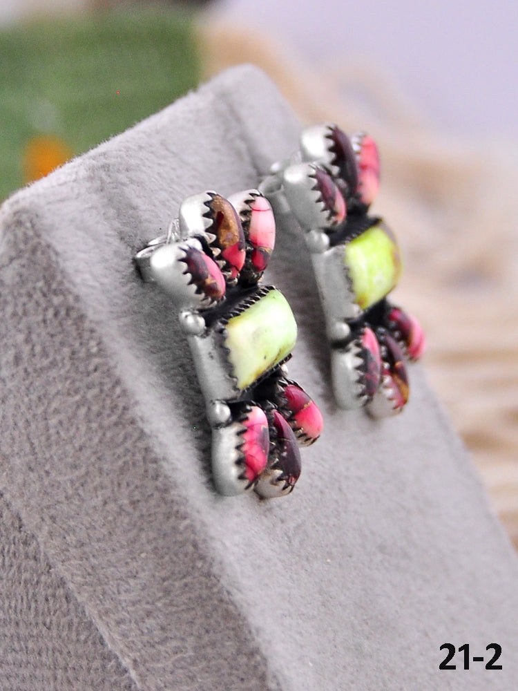 Southwest Made Multi Stone & Sterling Silver Post Earrings