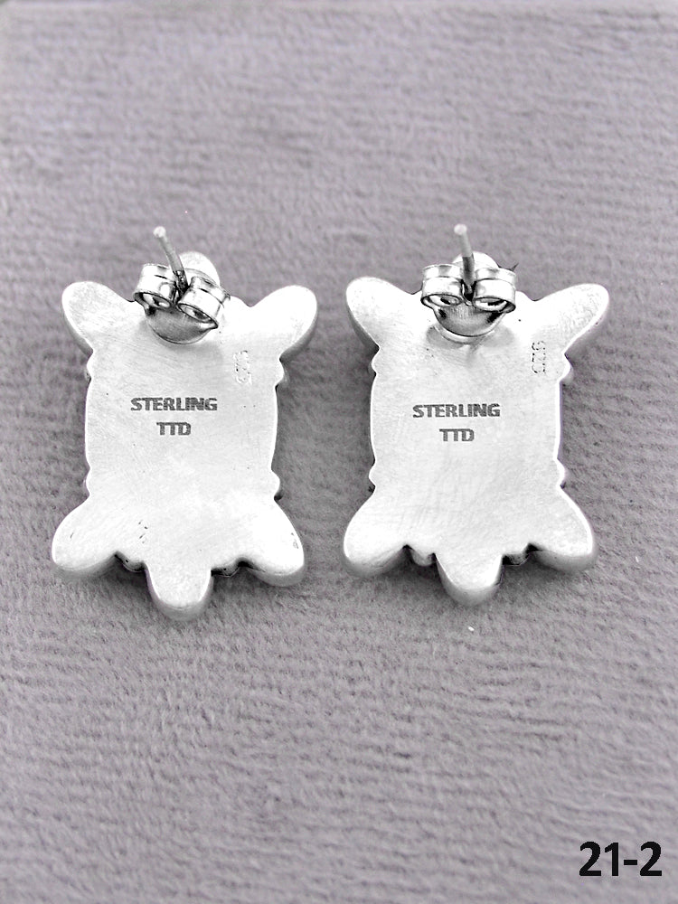 Southwest Made Multi Stone & Sterling Silver Post Earrings. It measures 1 1/8 inches long and 3/4 of an inch wide. Stamped and signed.