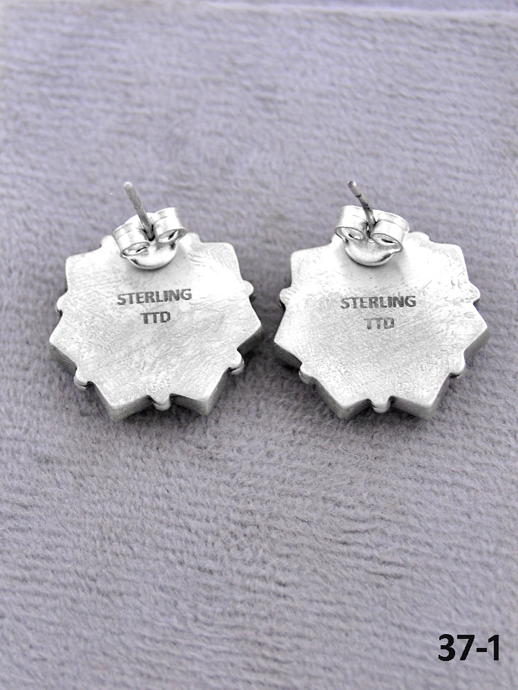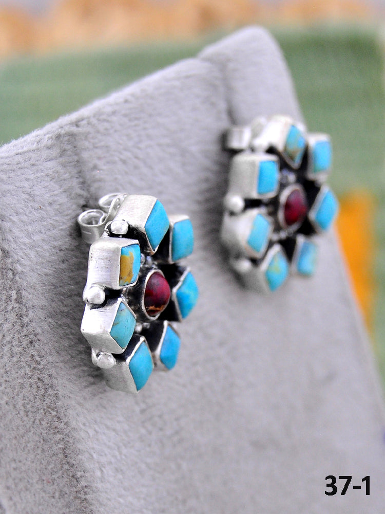 Southwest Made Multistone & Sterling Silver Post Earrings. It measures 7/8 inches long and 7/8 of an inch wide. Stamped and signed.