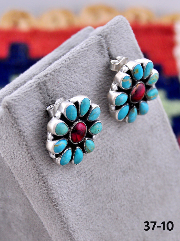Southwest Made Multistone & Sterling Silver Post Earrings