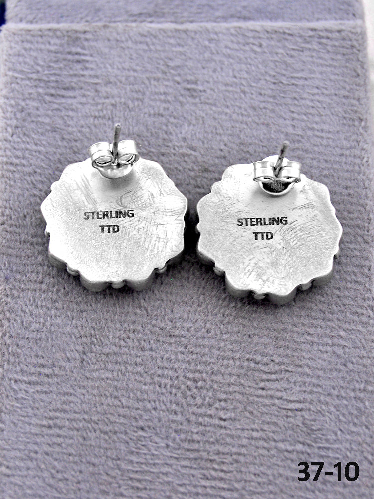 Southwest Made Multistone & Sterling Silver Post Earrings. It measures 7/8 inches long and 7/8 of an inch wide. Stamped and signed.