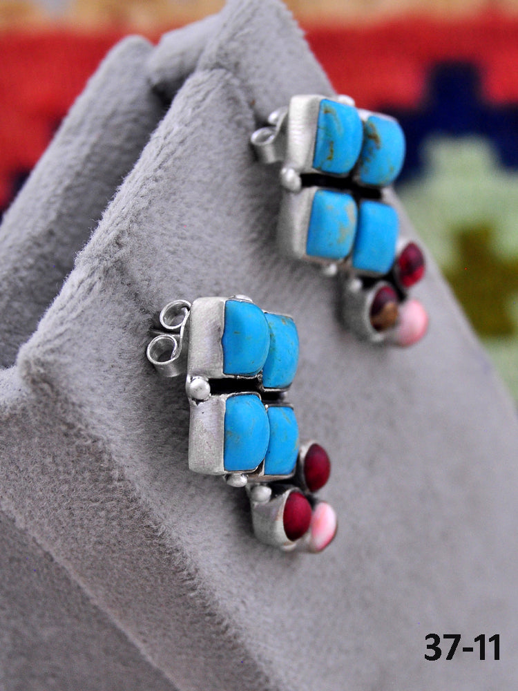 Southwest Made Multistone & Sterling Silver Post Earrings