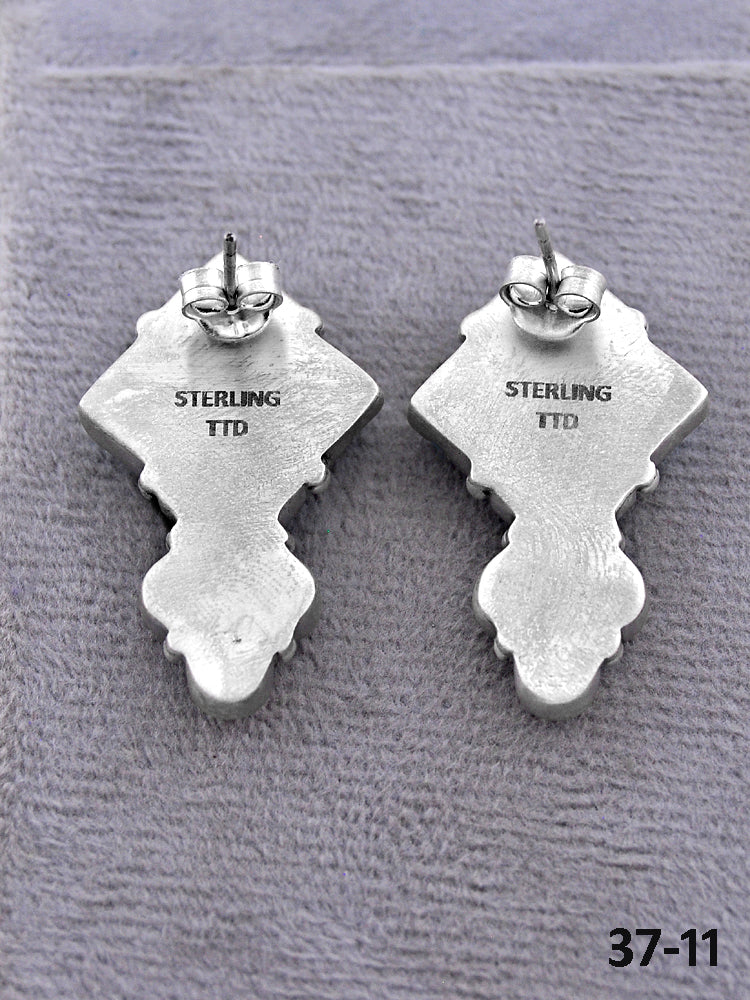 Southwest Made Multistone & Sterling Silver Post Earrings. It measures 1 1/2 inches long and 7/8 of an inch wide. Stamped and signed.