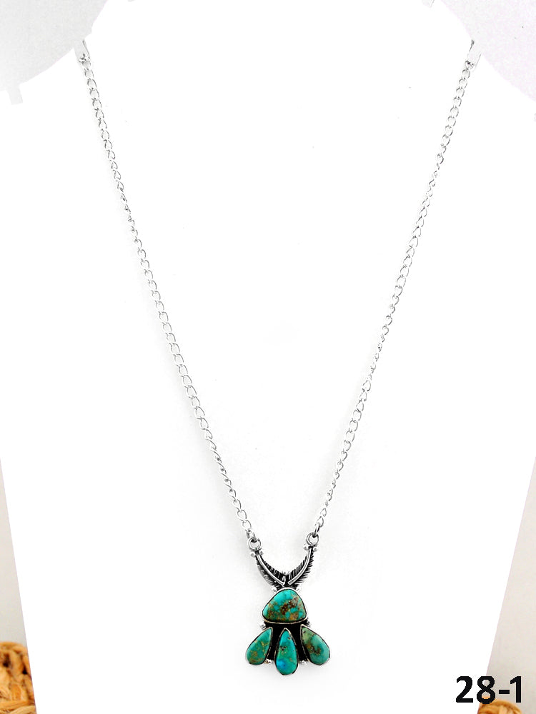 Southwest Made Multistone Turquoise & Sterling Silver Necklace. It measures 19 inches long with hang while the chain measures 18 inches long, and the stones are 6/8 of an inch wide. Signed by the artist and stamped sterling silver.