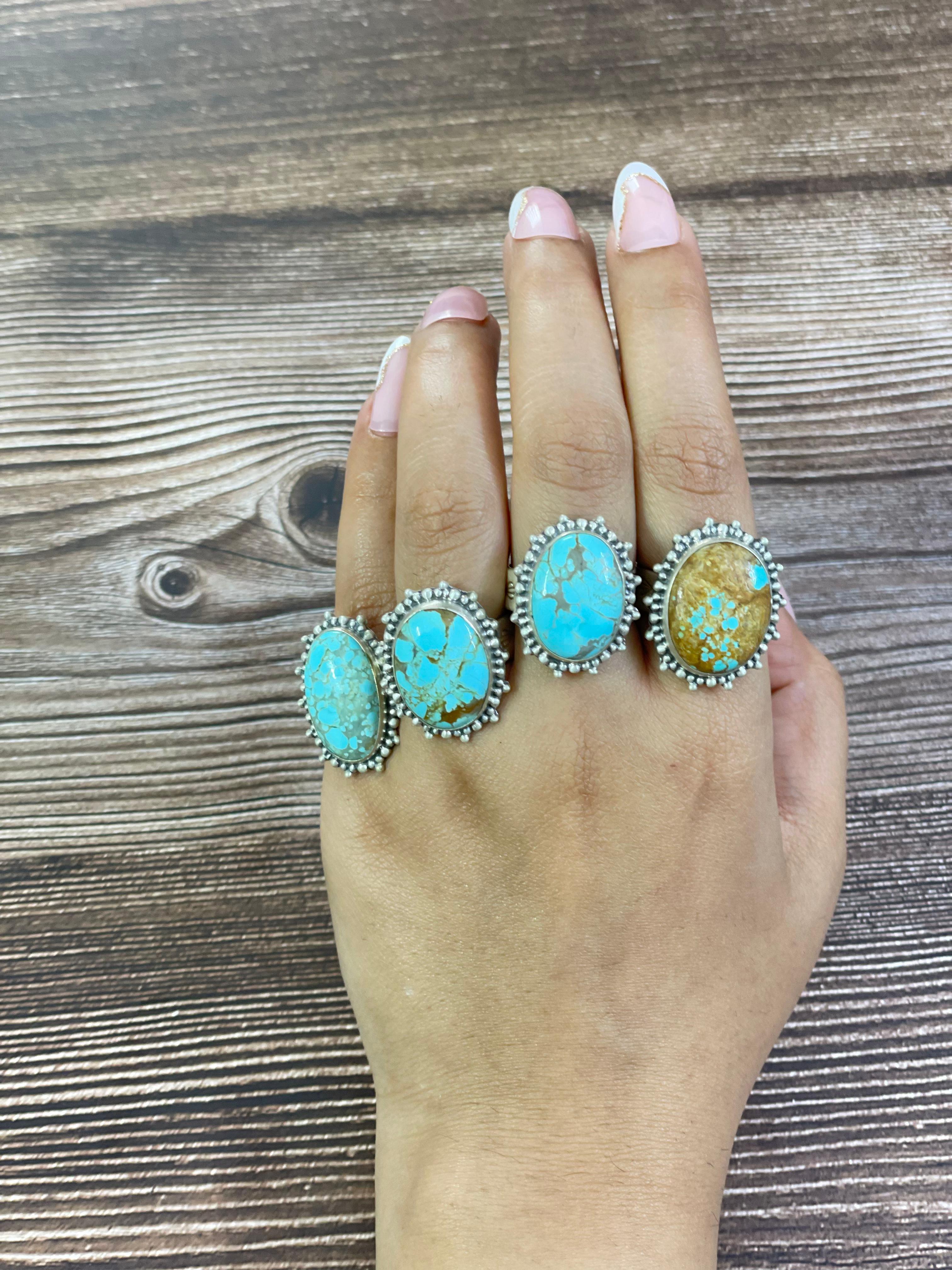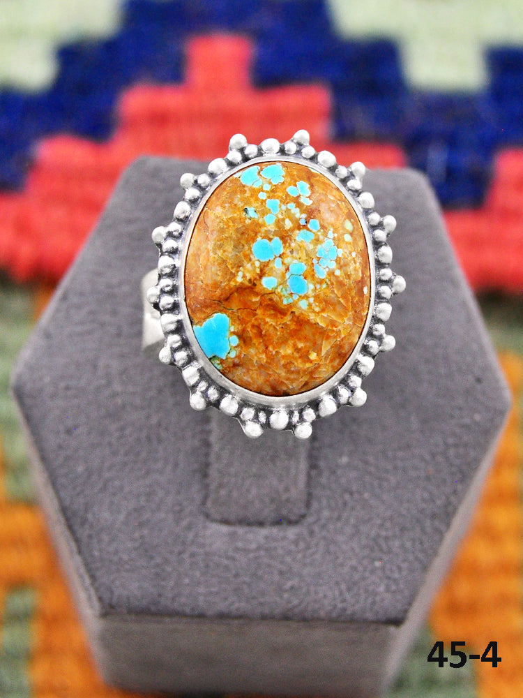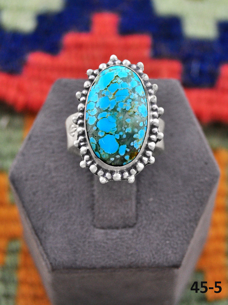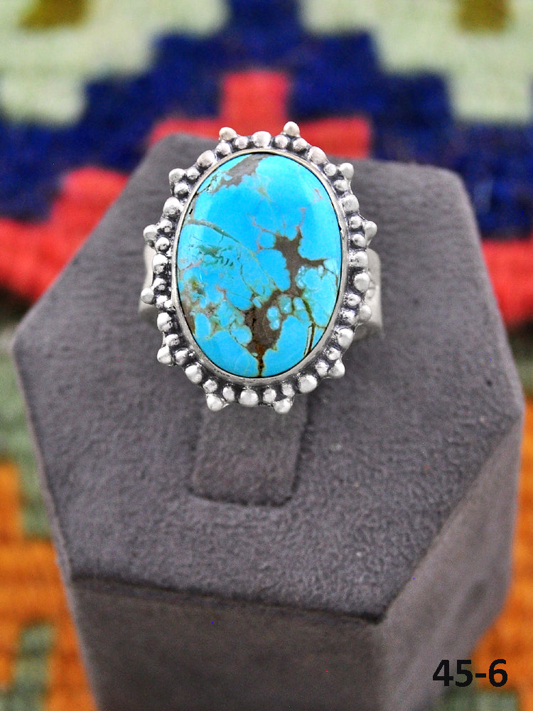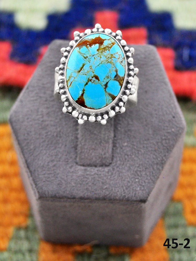 Southwest Made No.8 Turquoise & Sterling Silver Adjustable Ring