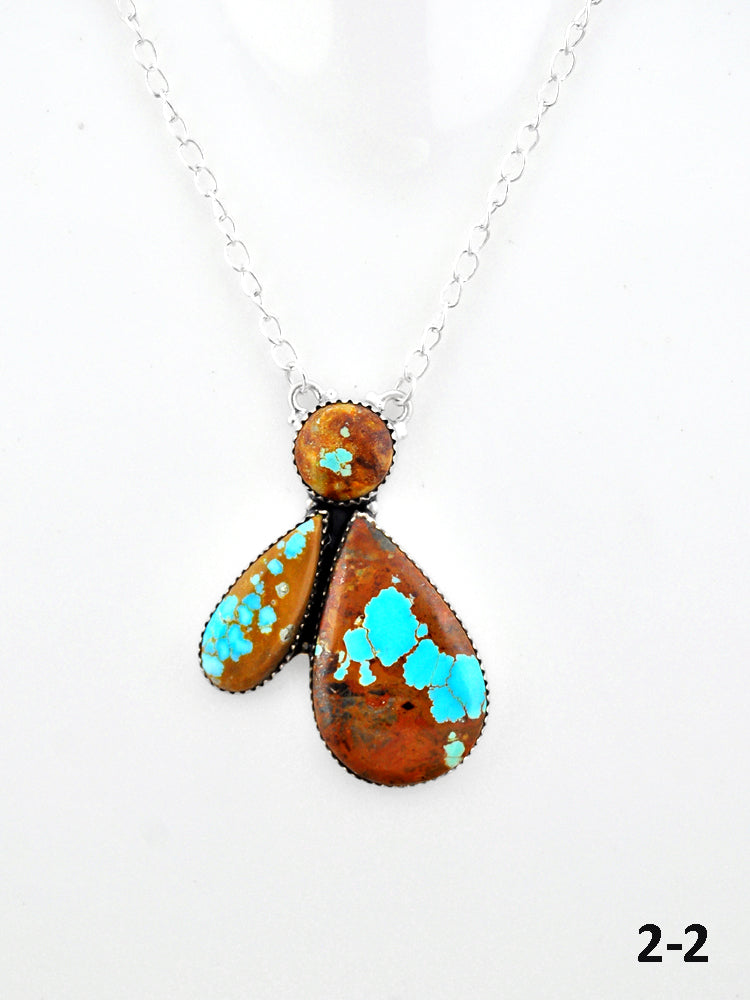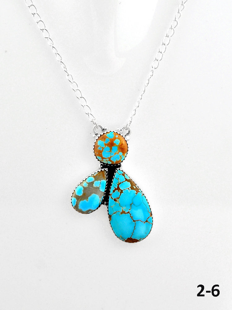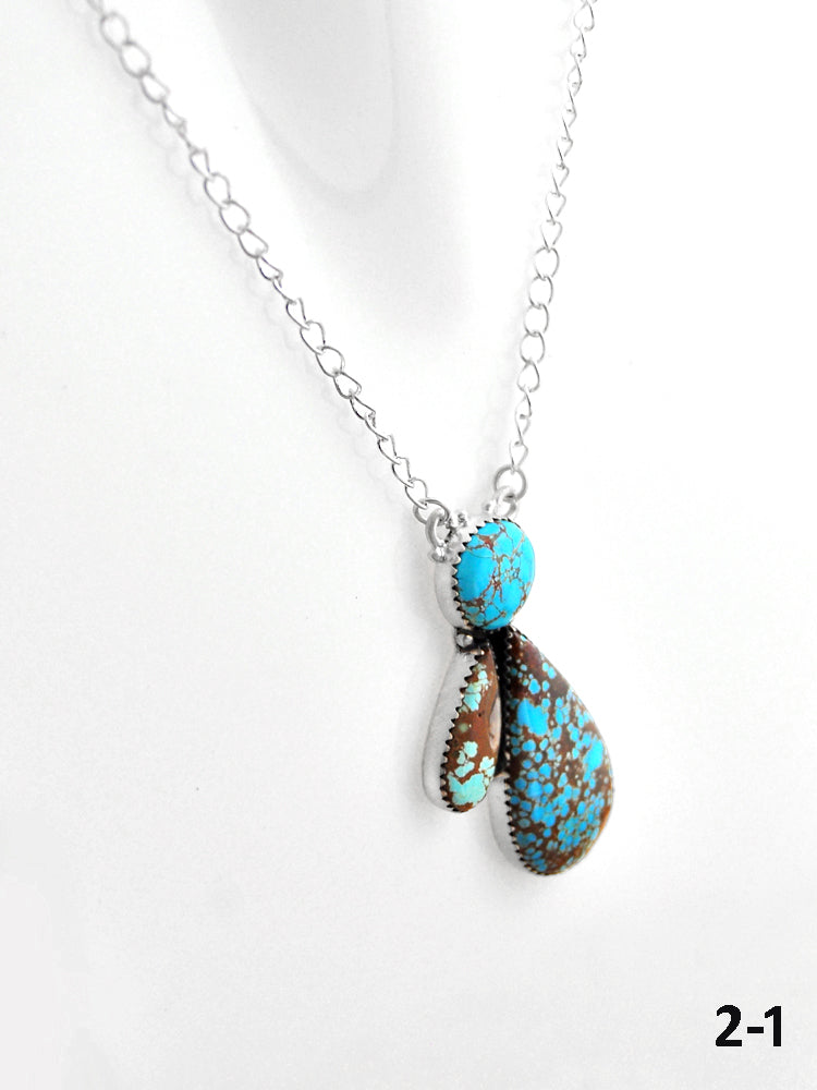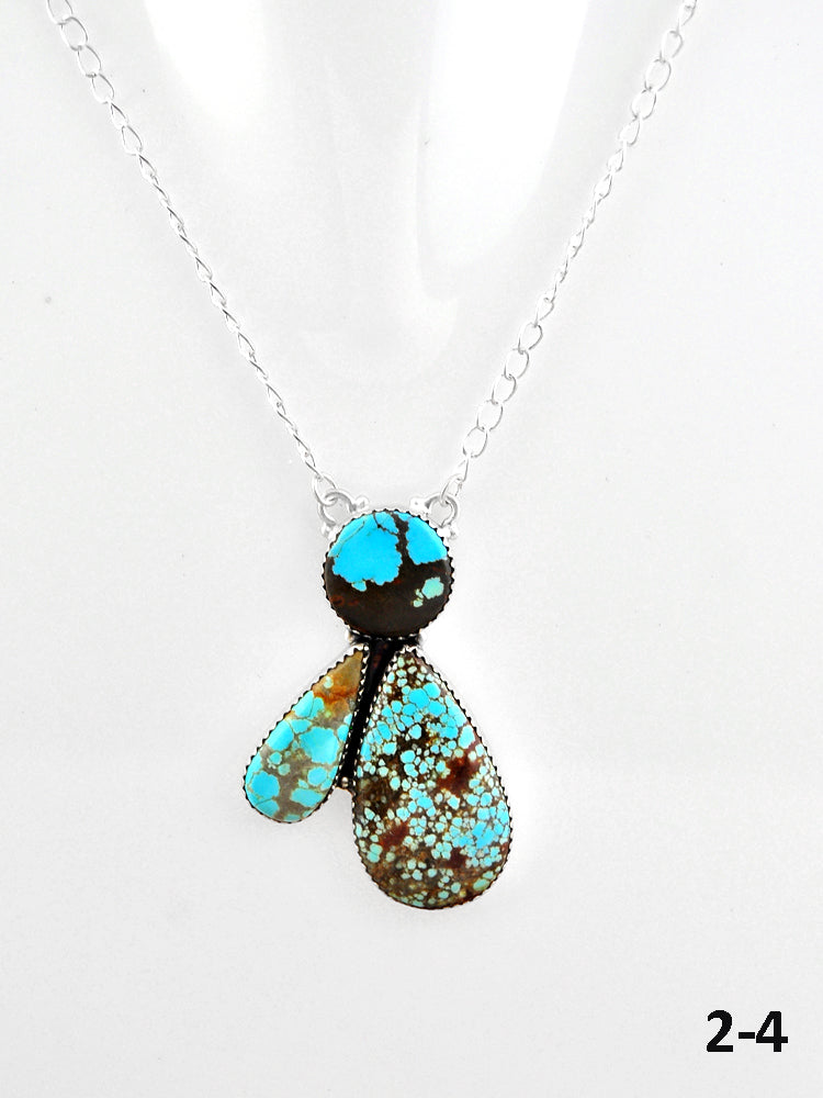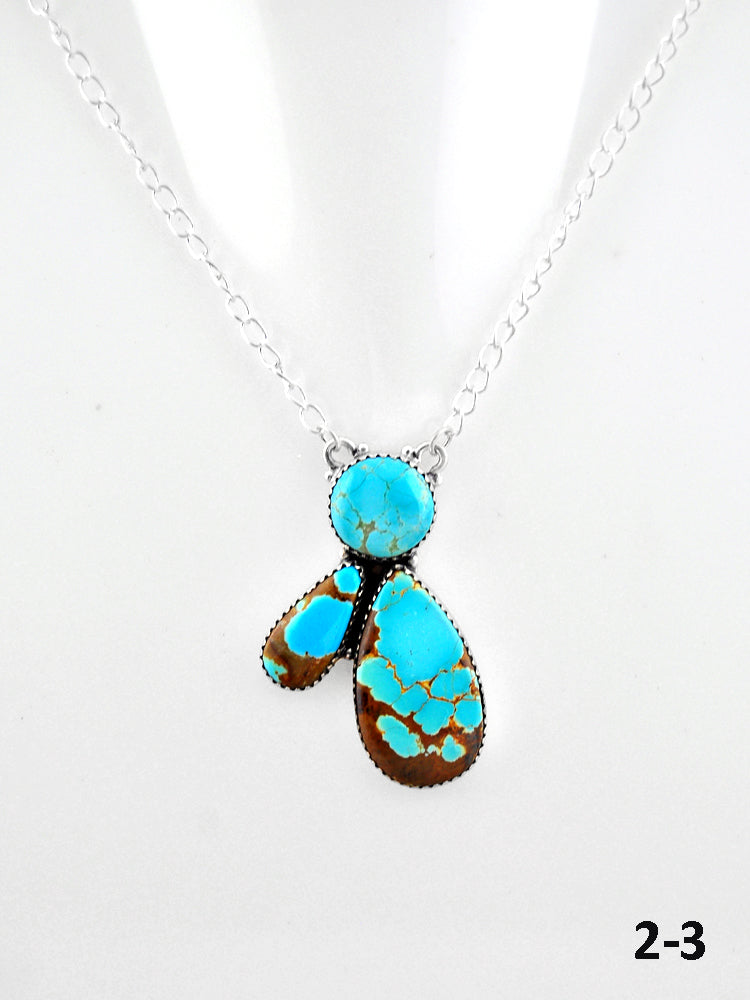 Southwest Made No.8 Turquoise and Sterling Silver Necklace. It measures just over 21 inches long with hang while the chain measures 18 inches long. Signed by the artist and stamped sterling silver.