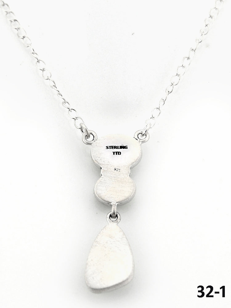 Southwest Made Paloma & Sterling Silver Necklace. It measures just over 19 inches long with hang while the chain measures 18 inches long. Signed by the artist and stamped sterling silver.