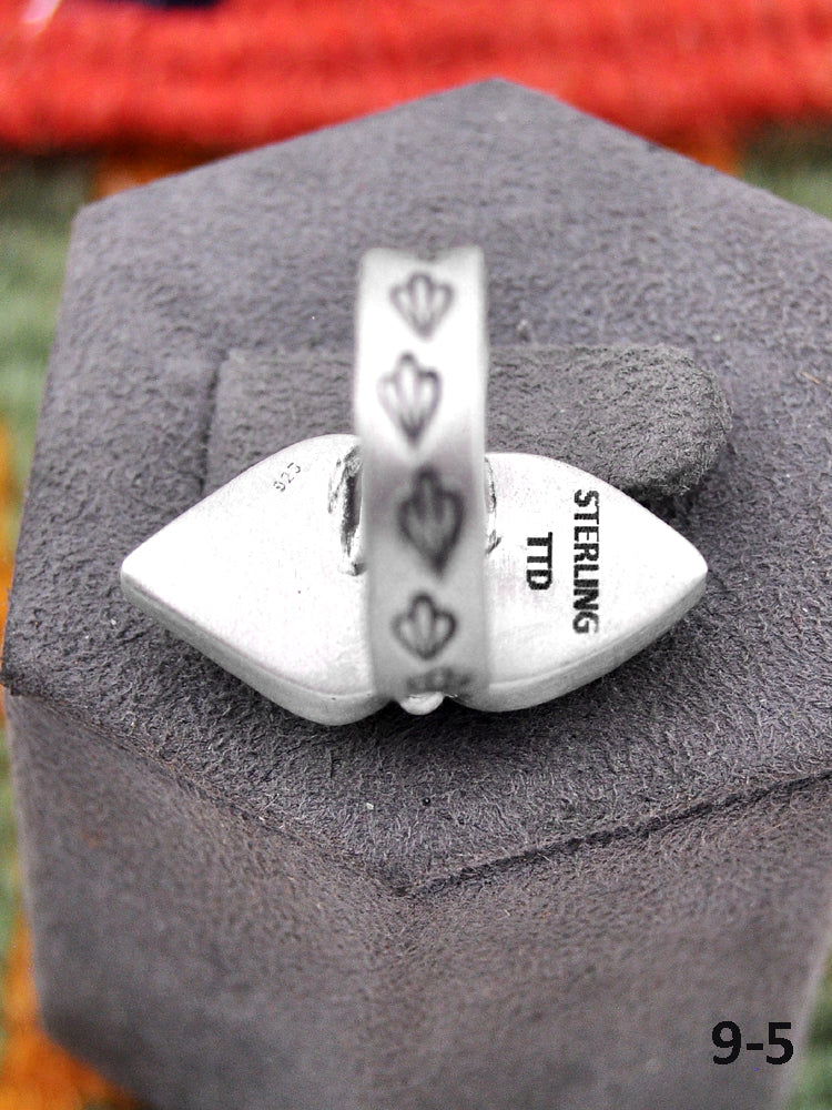 Southwest Made Palomino Turquoise & Sterling Sliver Adjustable Ring. It measures 1 1/4 inches long and 5/8 inch wide.
