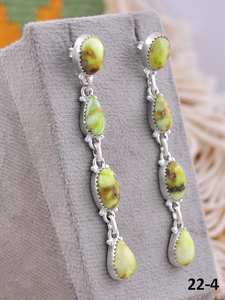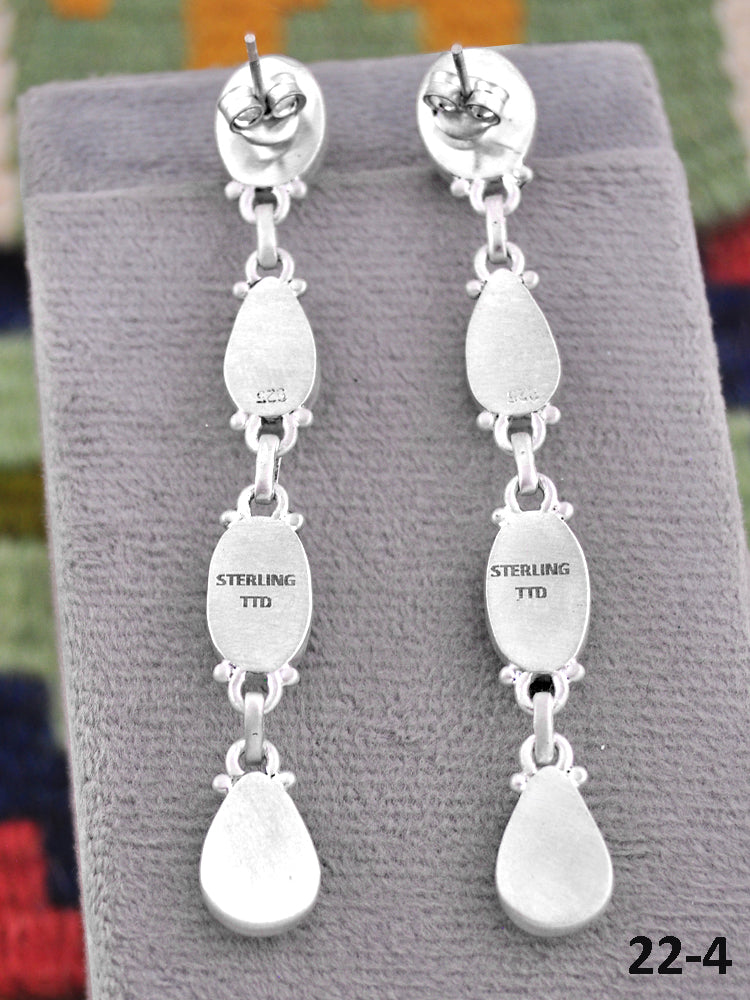 Southwest Made Palomino & Sterling Silver Post Dangle Earrings. It measures 3 1/8 inches long and 3/8 of an inch wide. Stamped and signed.