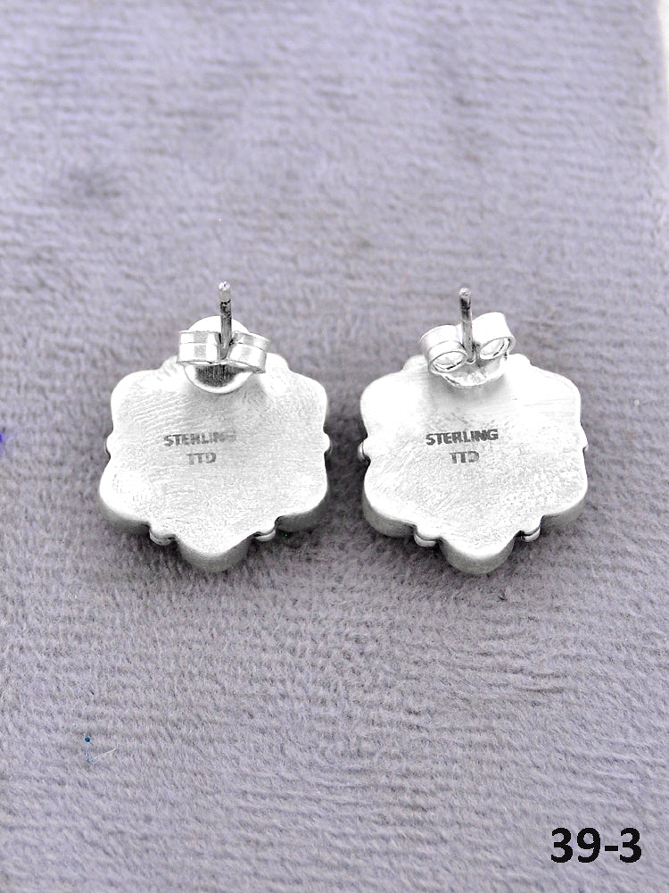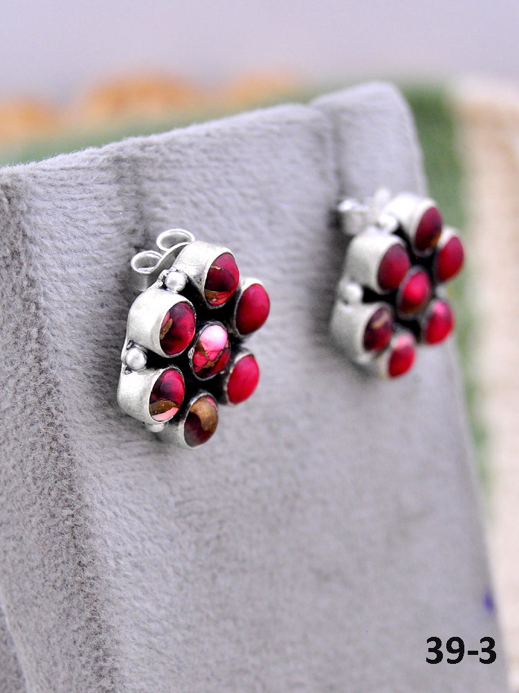 Southwest Made Red Dahlia & Sterling Silver Post Earrings. It measures 3/4 inches long and 3/4 of an inch wide. Stamped and signed.