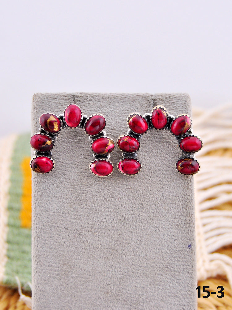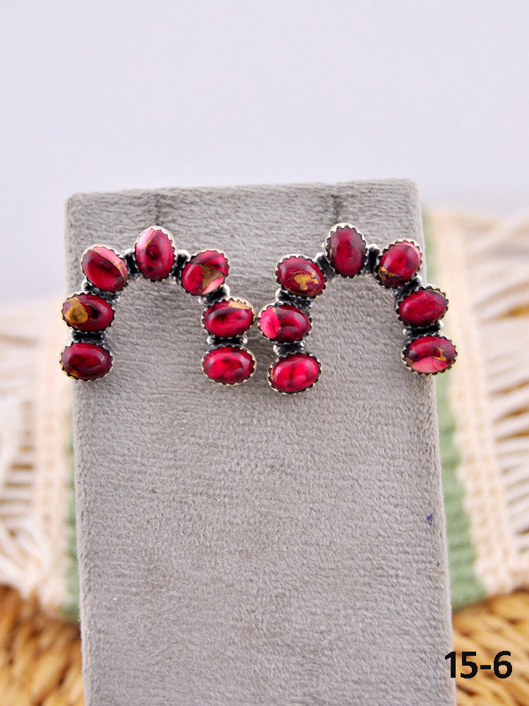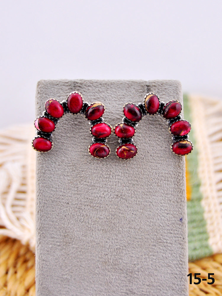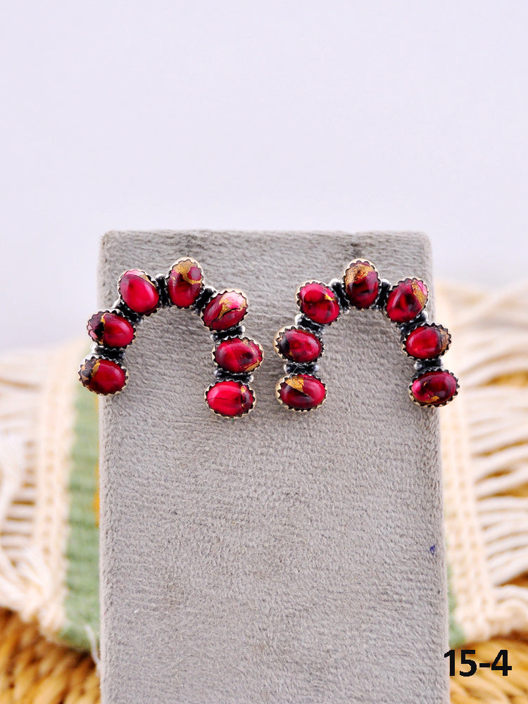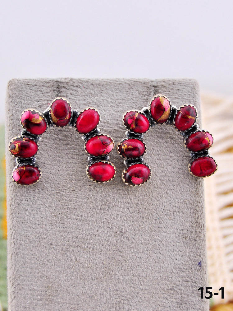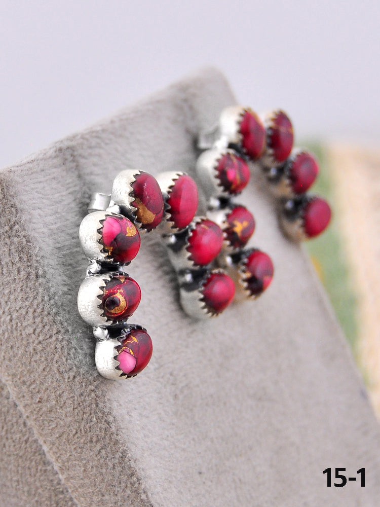 Southwest Made Rose Dahlia & Sterling Silver Post Earrings