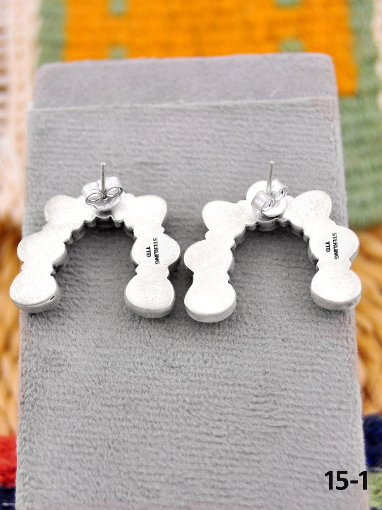 Southwest Made Rose Dahlia & Sterling Silver Post Earrings. It measures 1 inch long and 1 1/4 inches wide. Stamped and signed.