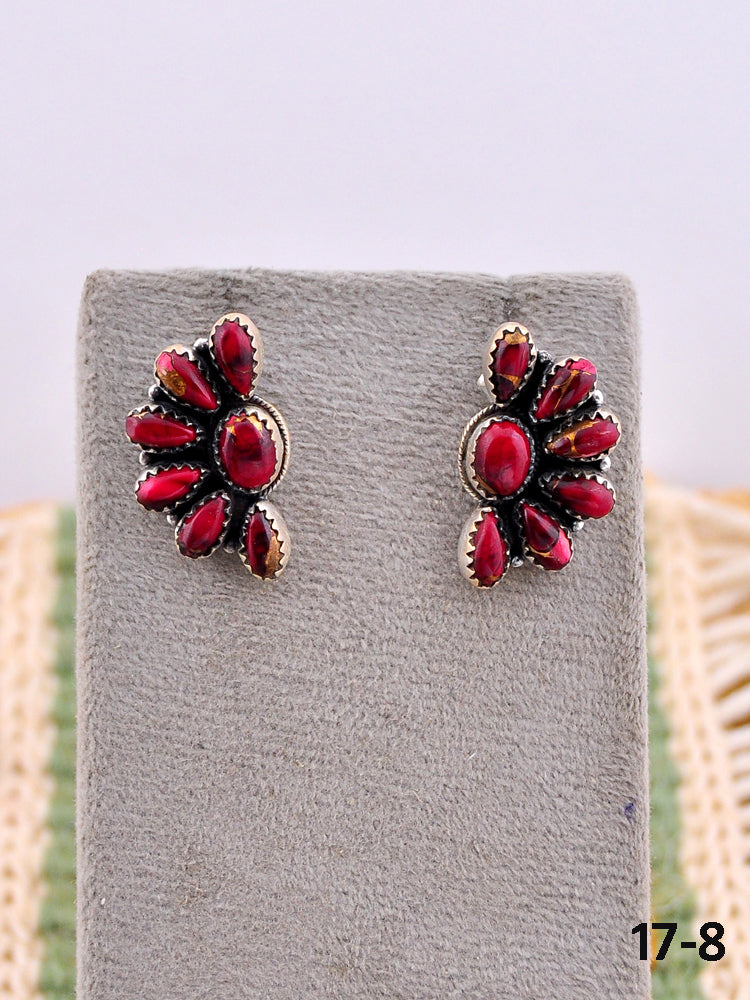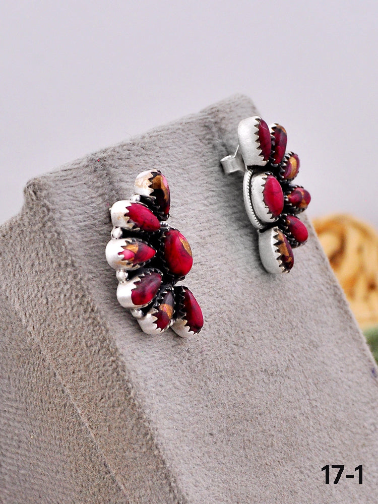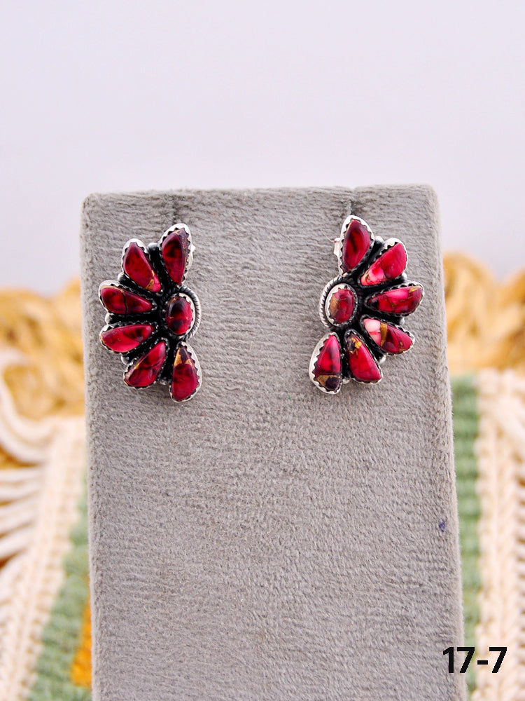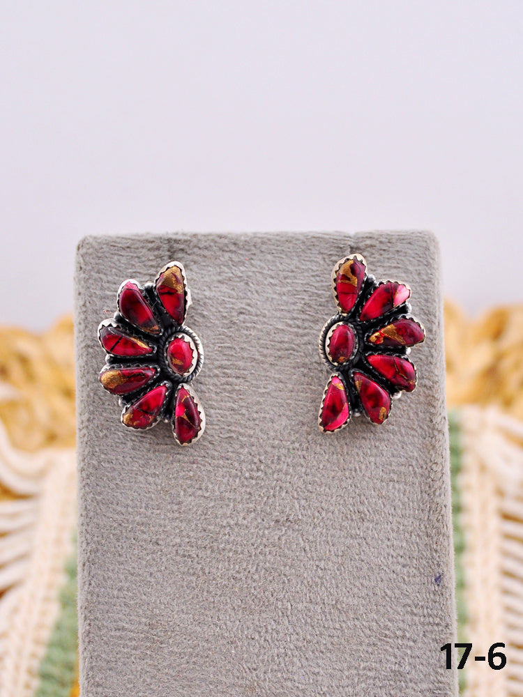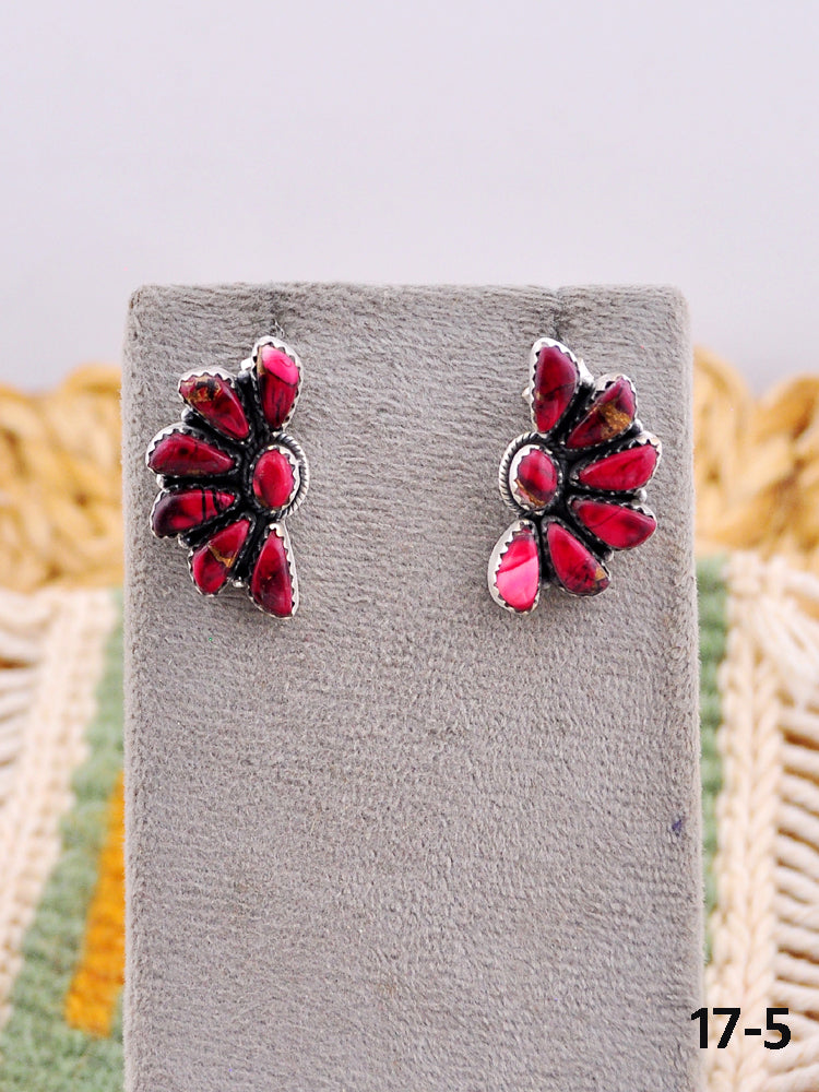 Southwest Made Rose Dahlia & Sterling Silver Post Earrings