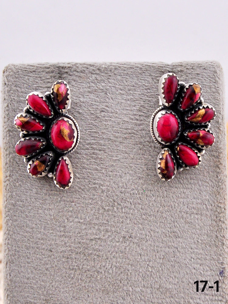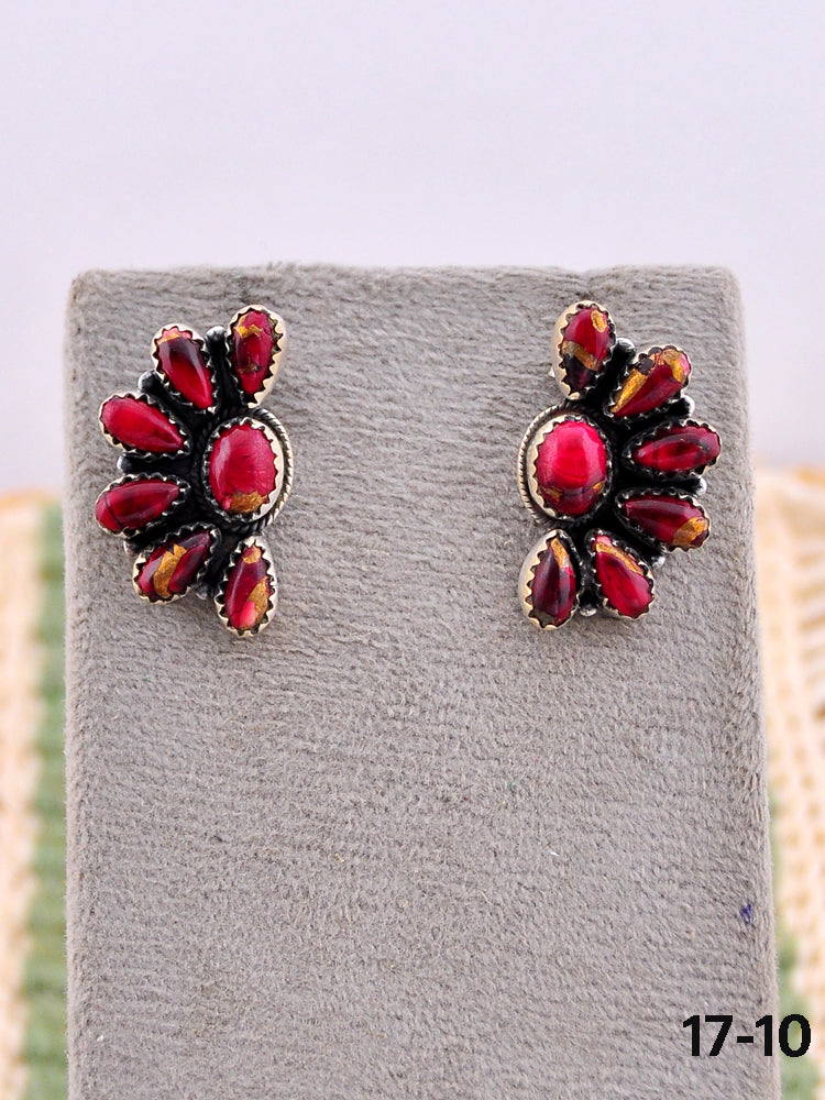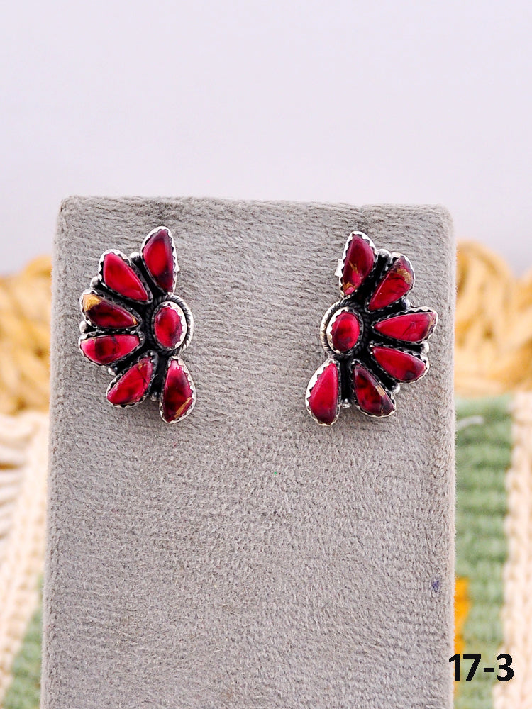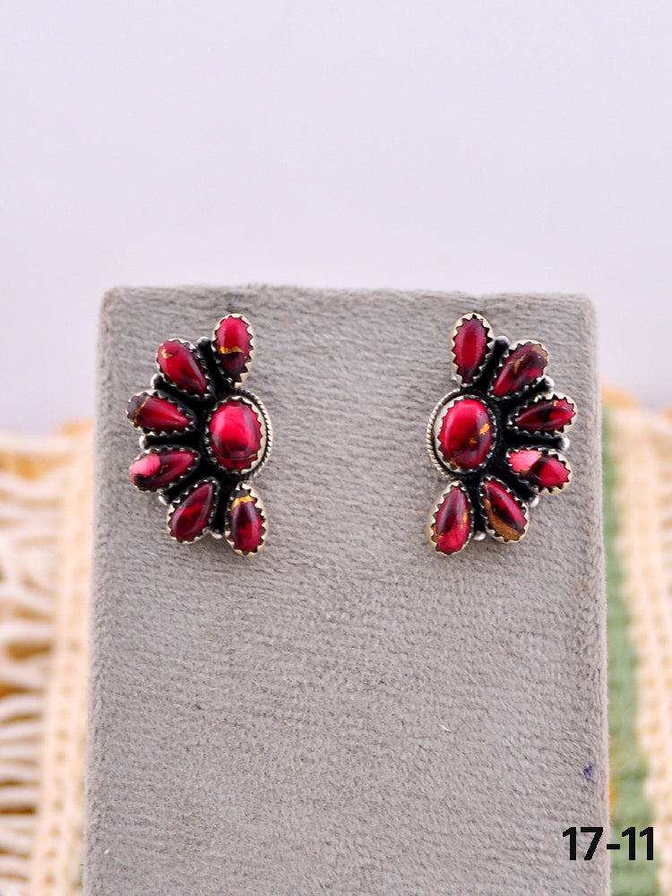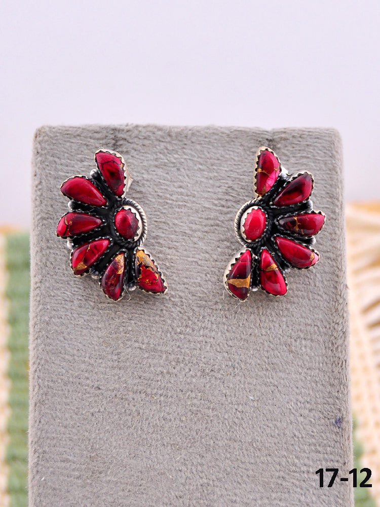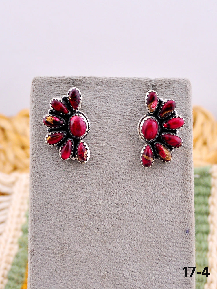 Southwest Made Rose Dahlia & Sterling Silver Post Earrings