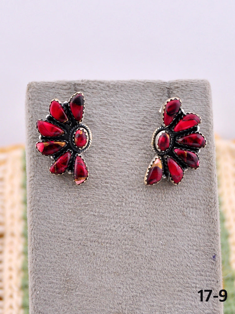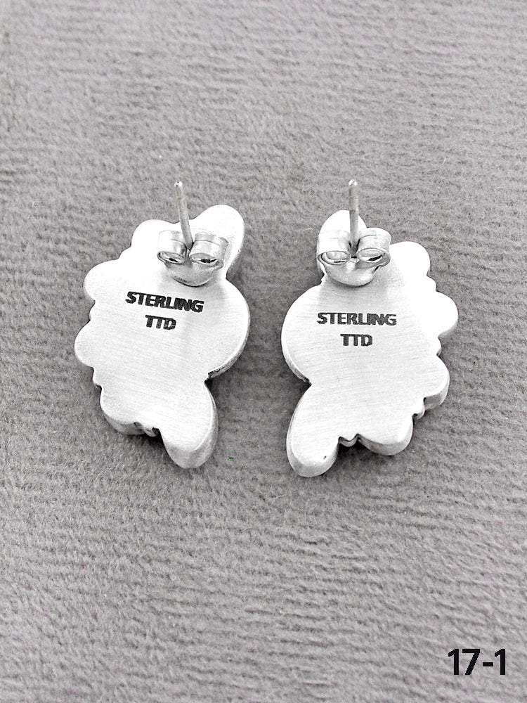 Southwest Made Rose Dahlia & Sterling Silver Post Earrings. It measures 1 1/8 inches long and 5/8 of an inch wide. Stamped and signed.