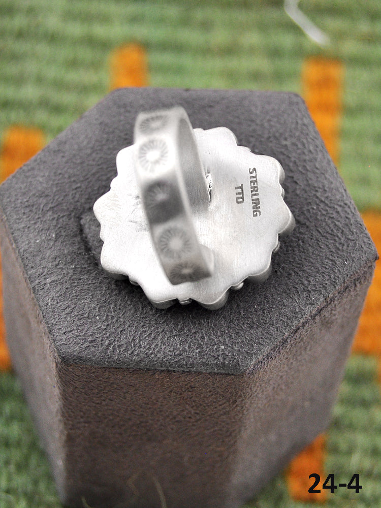 Southwest Made Rose Dahlia & Sterling Sliver Adjustable Ring. It measures 1 inch long and 1 inch wide.