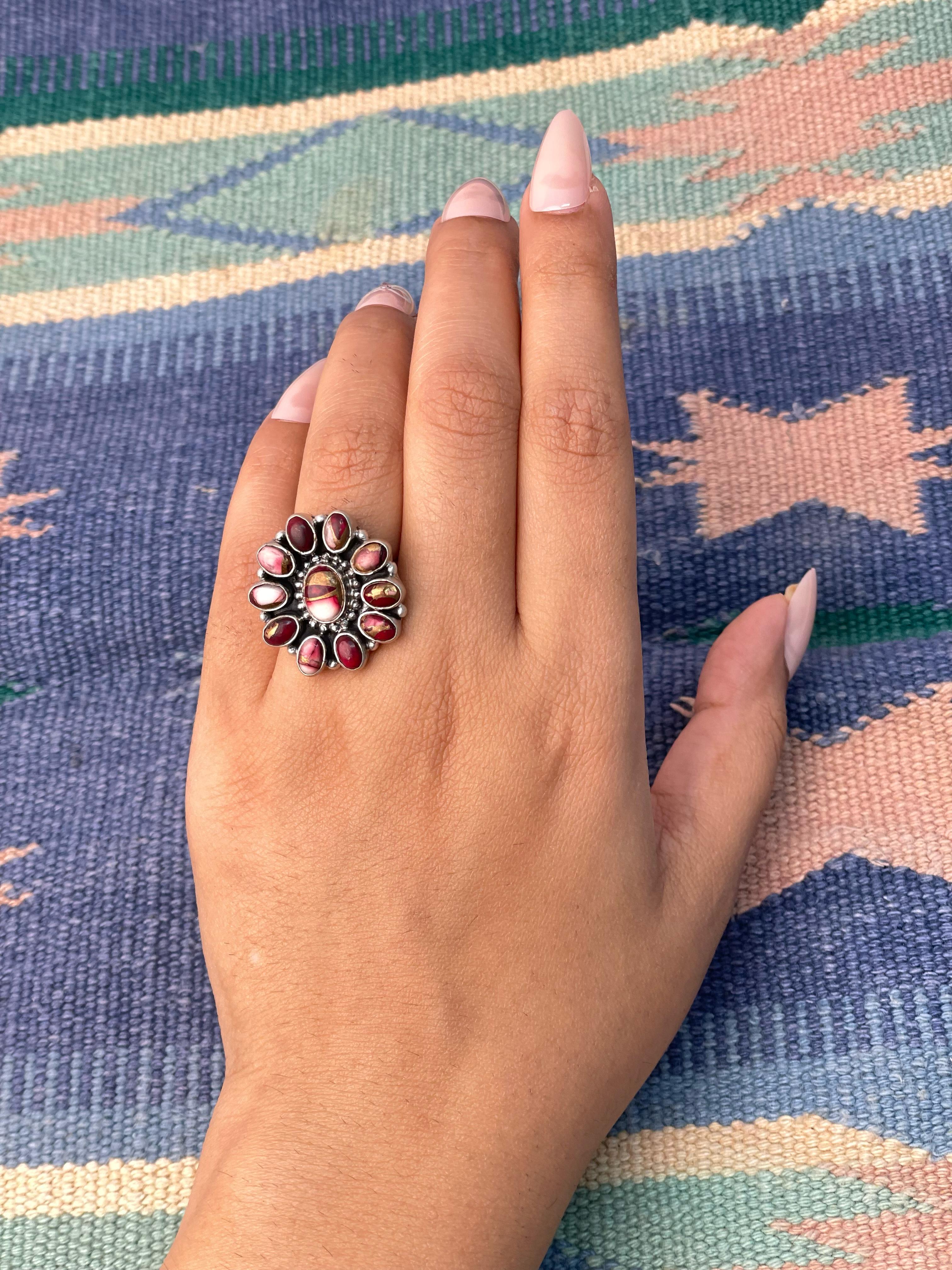 Southwest Made Rose Dahlia & Sterling Silver Adjustable Ring