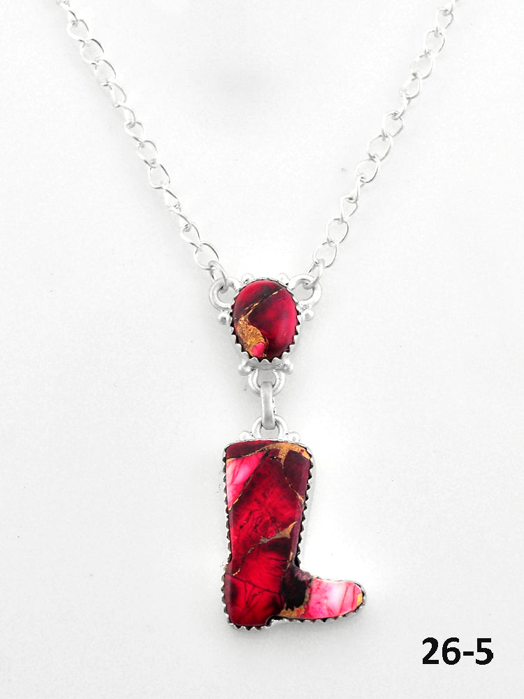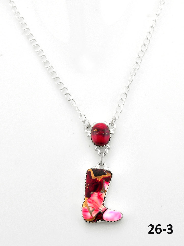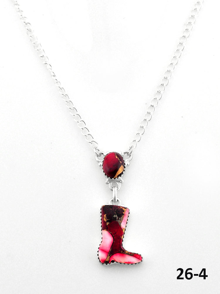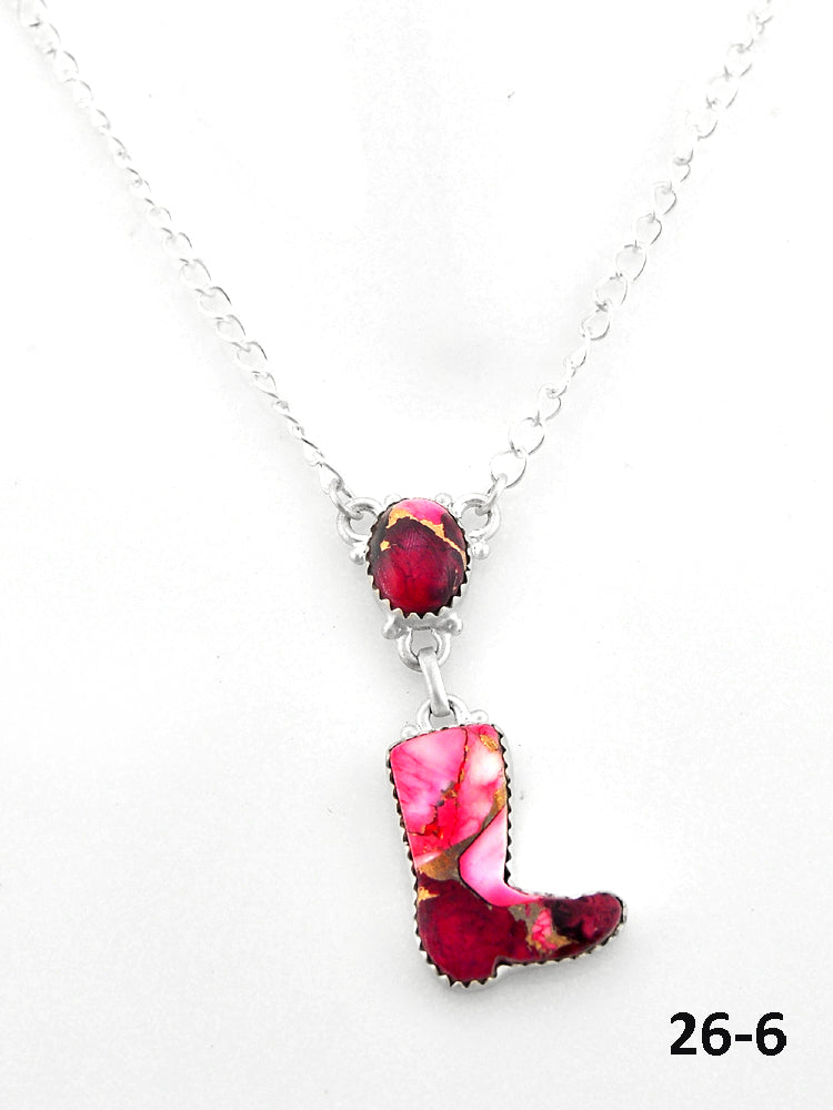 Southwest Made Rose Dahlia & Sterling Silver Necklace. It measures 21 inches long with hang while the chain measures 18 inches long, with drop 1 7/8 . Signed by the artist and stamped sterling silver.
