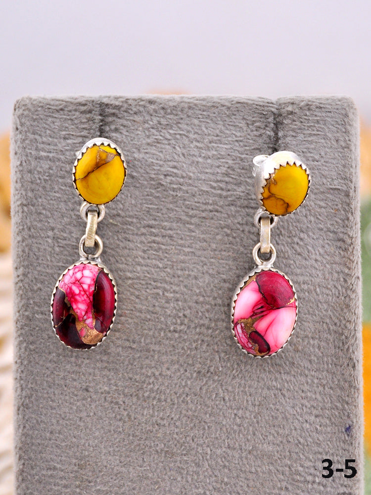 Southwest Made Rose and Honey Dahlia & Sterling Silver Post Earrings. It measures 1 inch long and 3/8 of an inch wide. Stamped and signed.