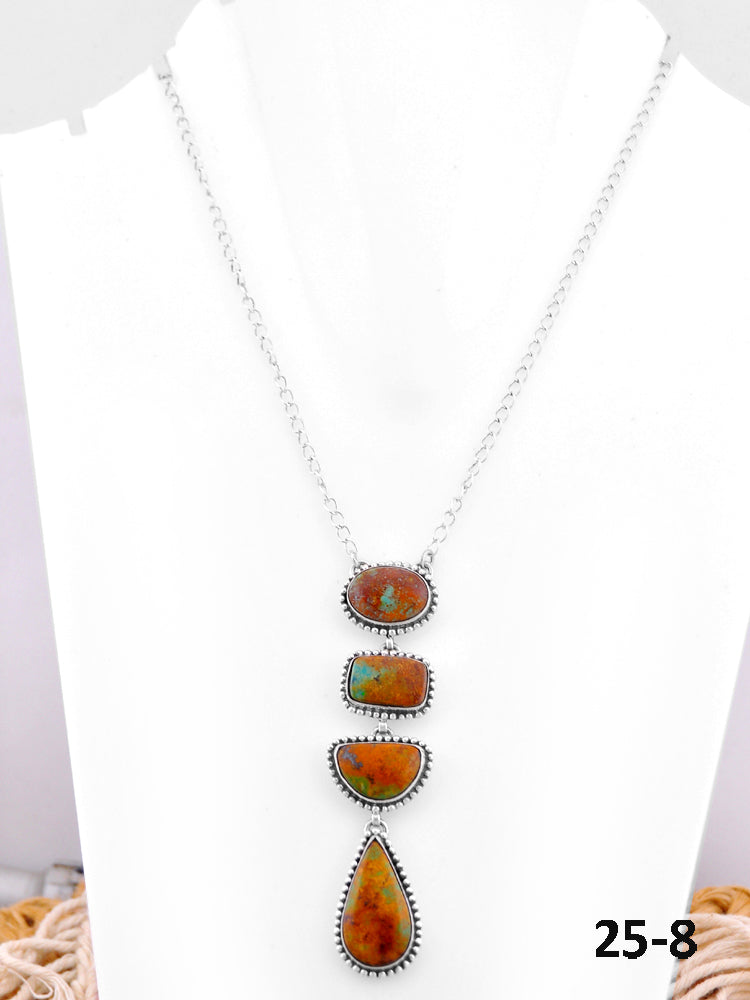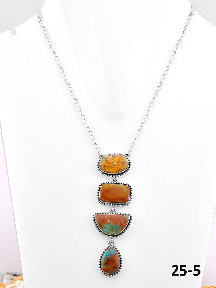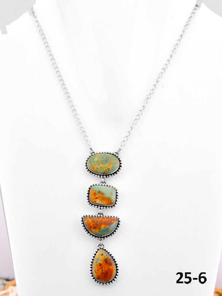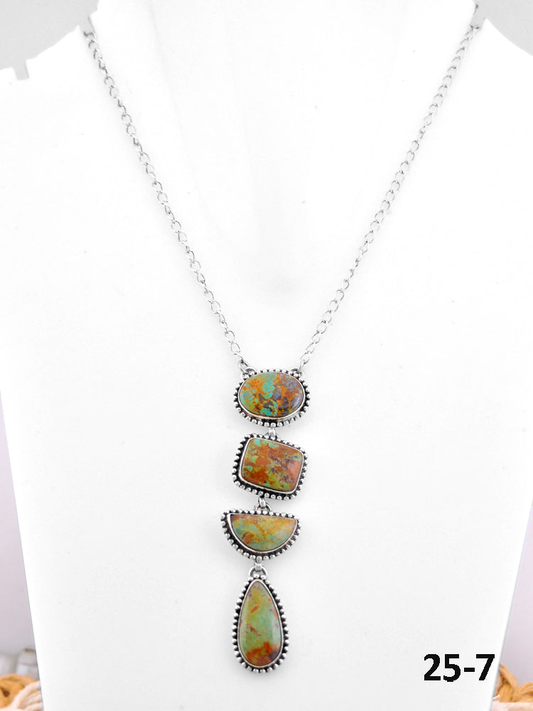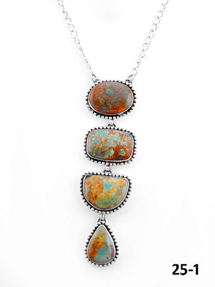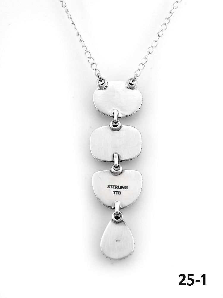 Southwest Made Royston Turquoise & Sterling Silver Necklace. It measures 24 inches long with hang while the chain measures 18 inches long along with a drop measuring 3 3/8 inches. Signed by the artist and stamped sterling silver.