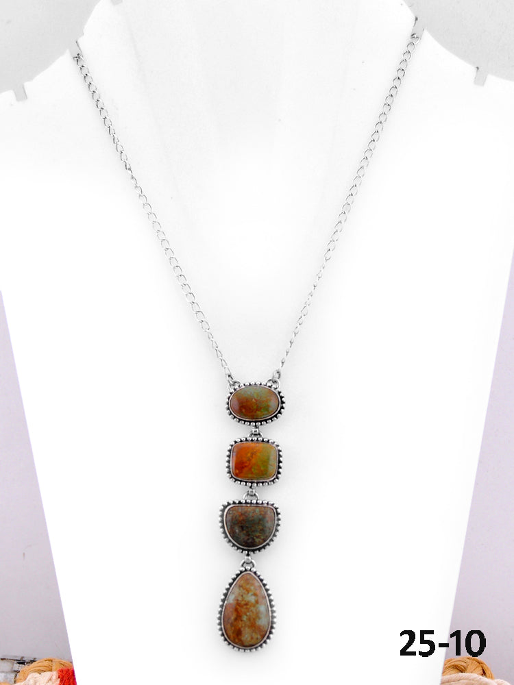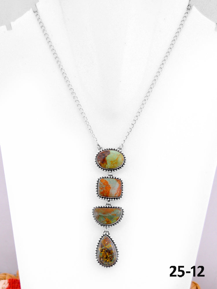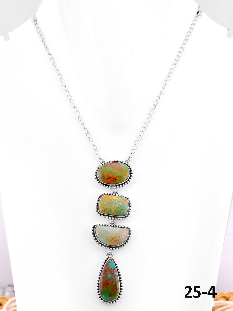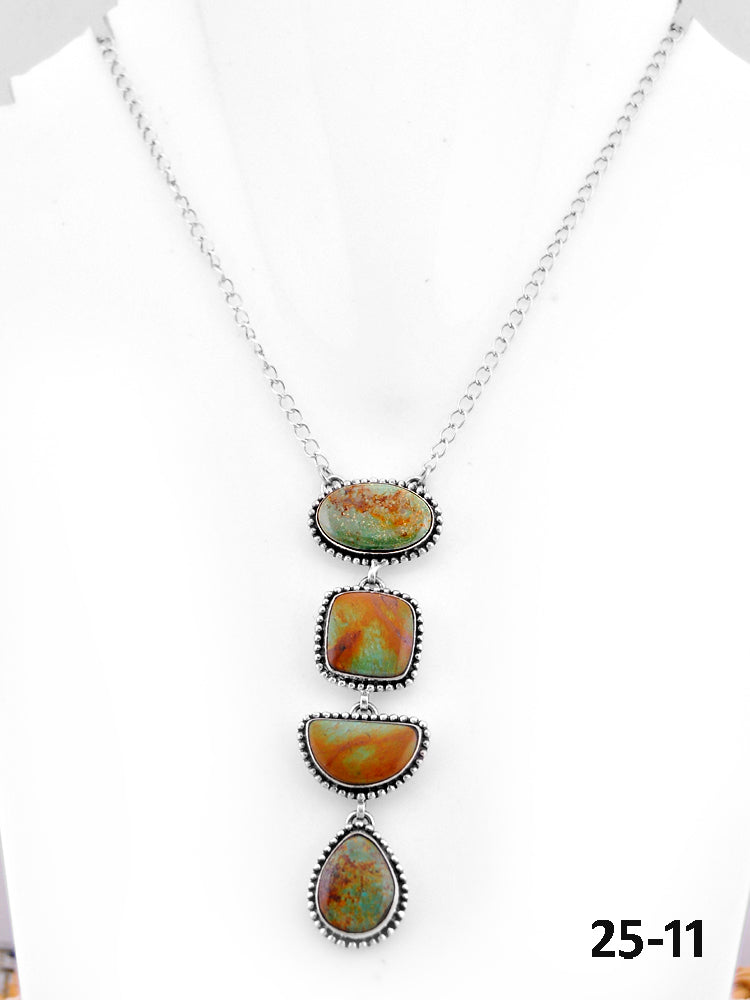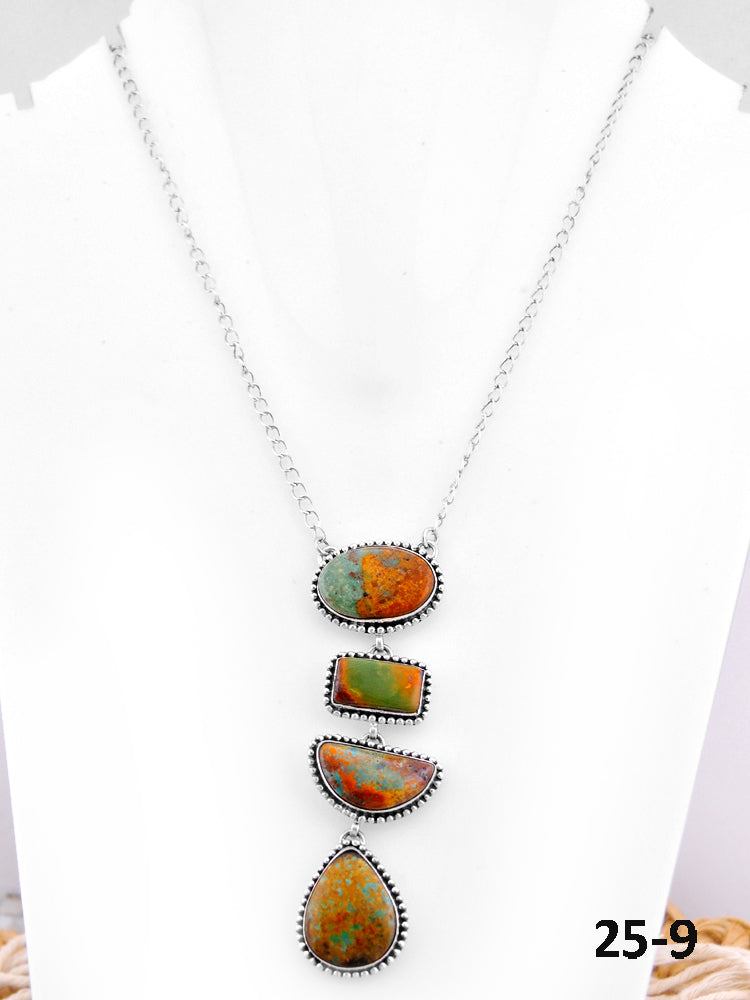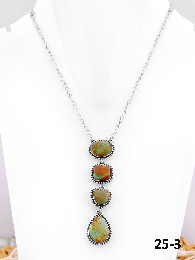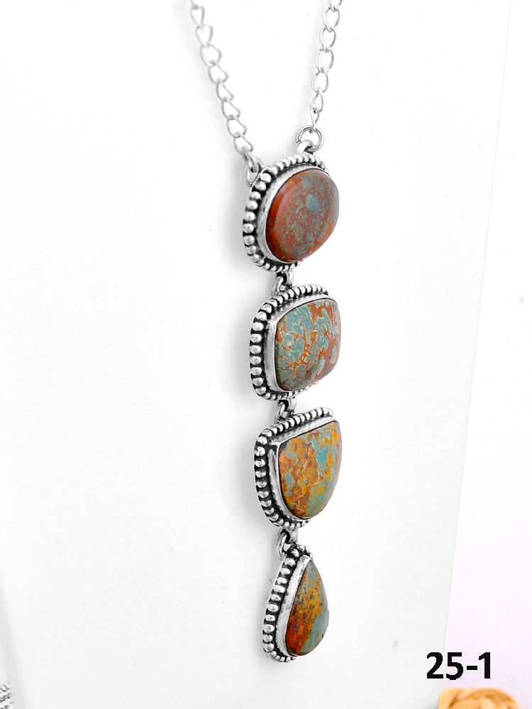 Southwest Made Royston Turquoise & Sterling Silver Necklace. It measures 24 inches long with hang while the chain measures 18 inches long along with a drop measuring 3 3/8 inches. Signed by the artist and stamped sterling silver.