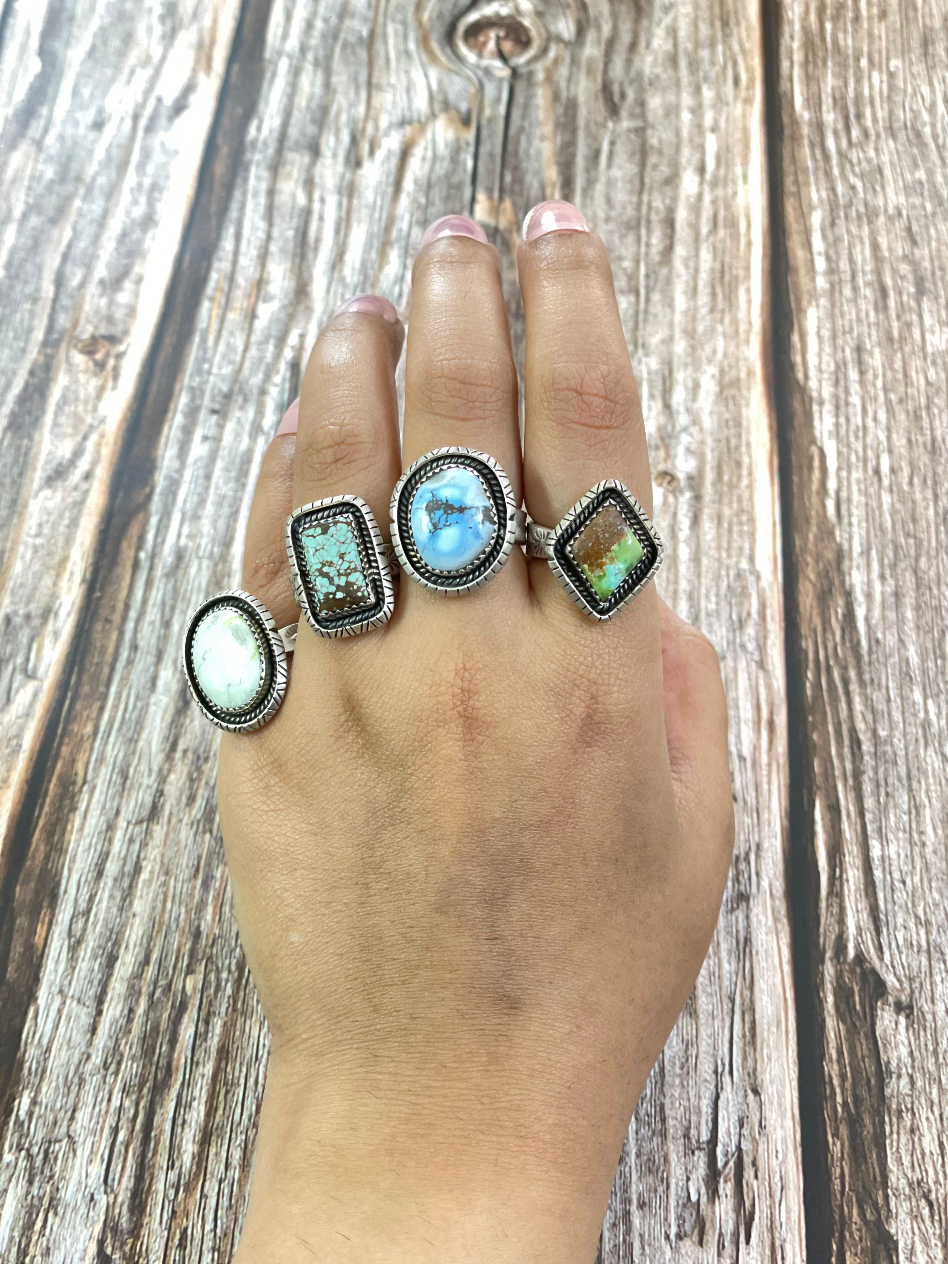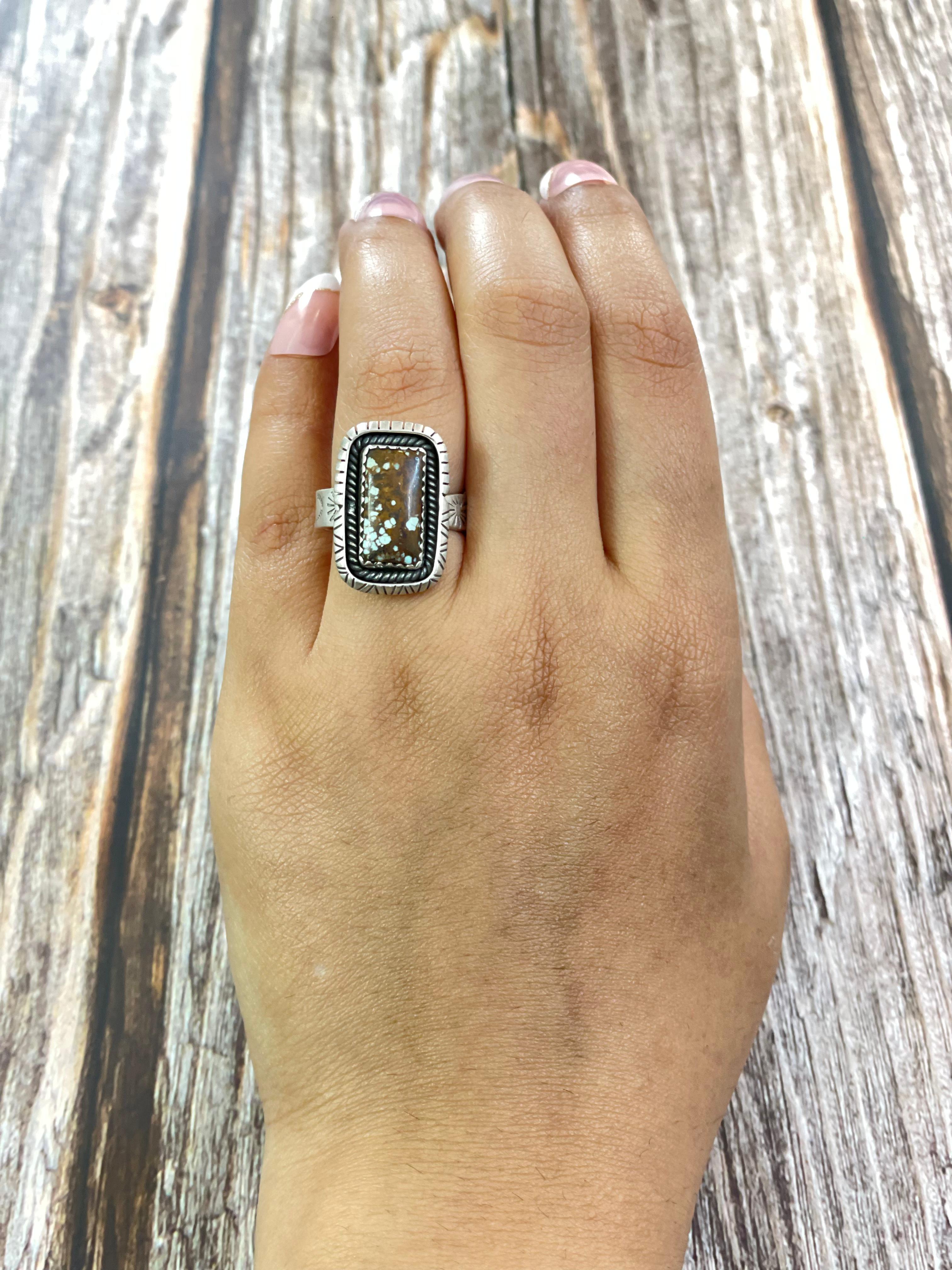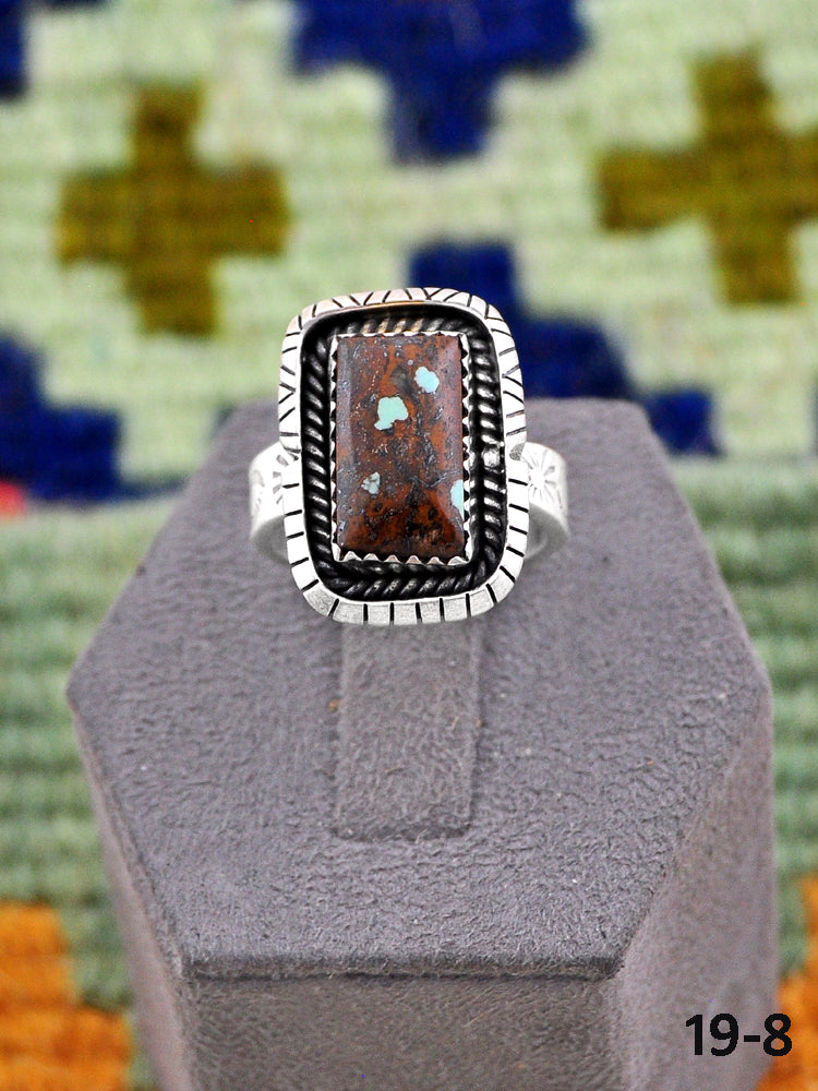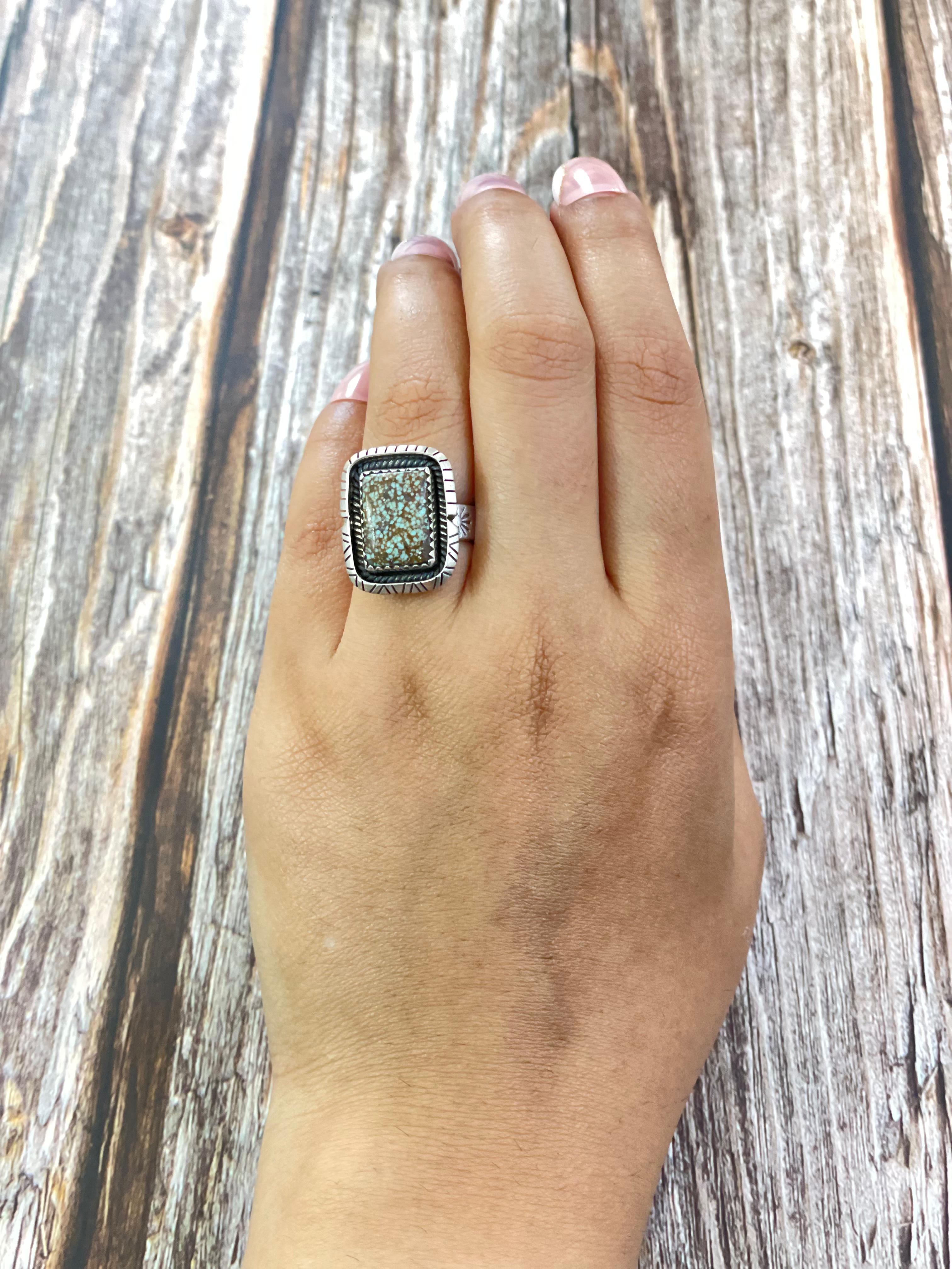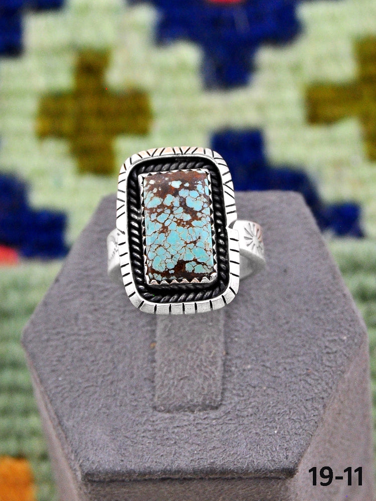 Southwest Made No. 8 Turquoise & Sterling Silver Adjustable Ring