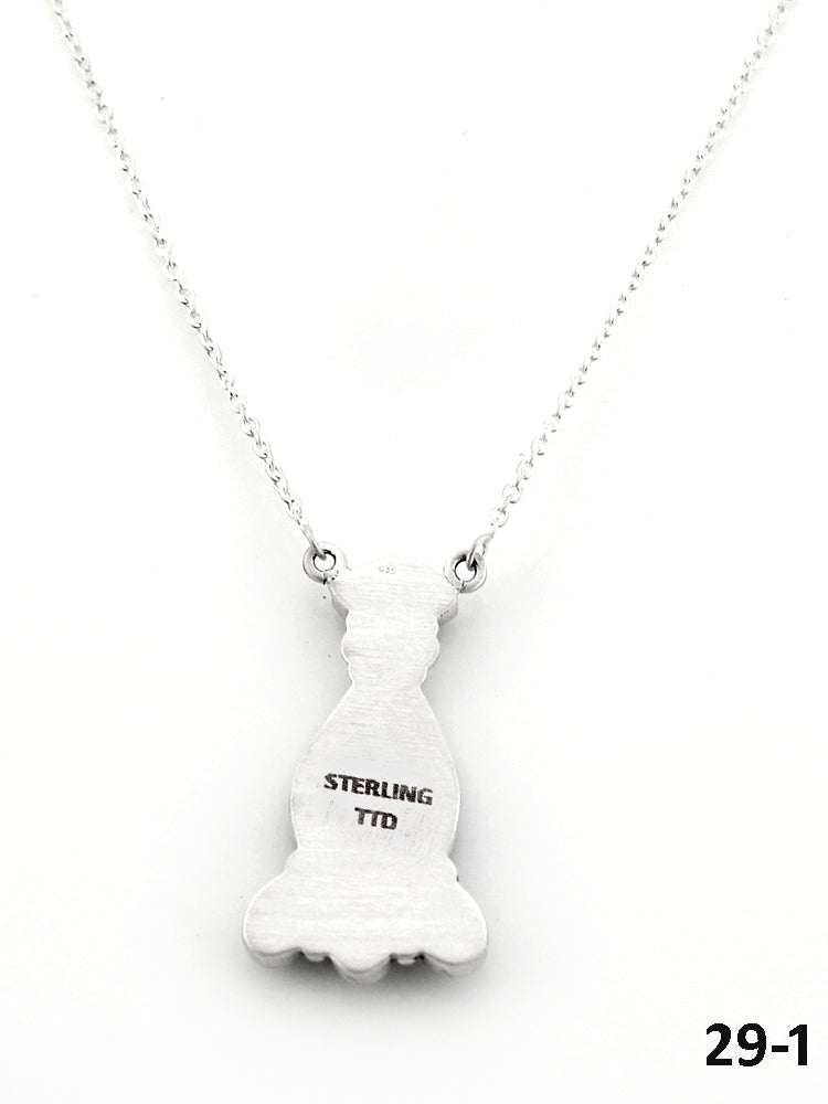 Southwest Made Sonoran Gold, Golden Hills & Sterling Silver Necklace. It measures just over 21 inches long with hang while the chain measures 18 inches long. Signed by the artist and stamped sterling silver.