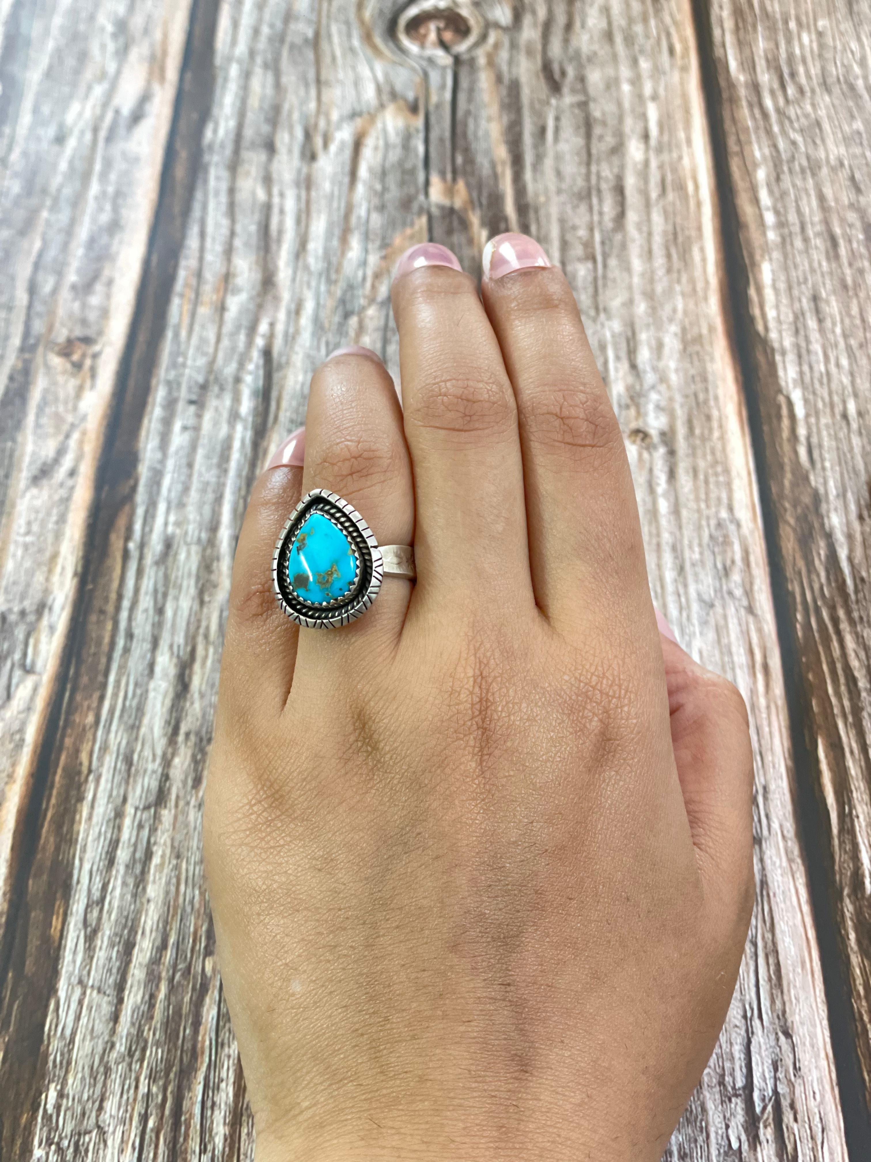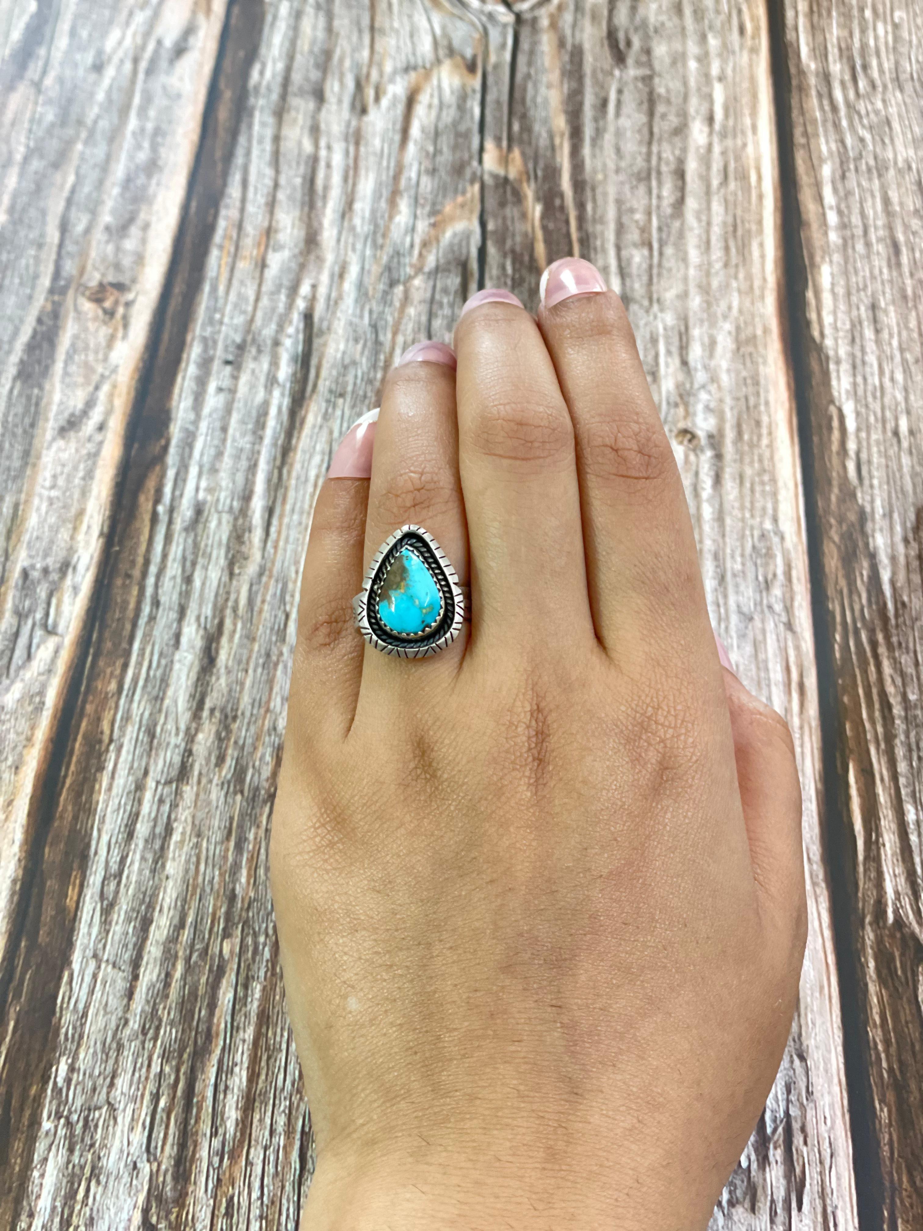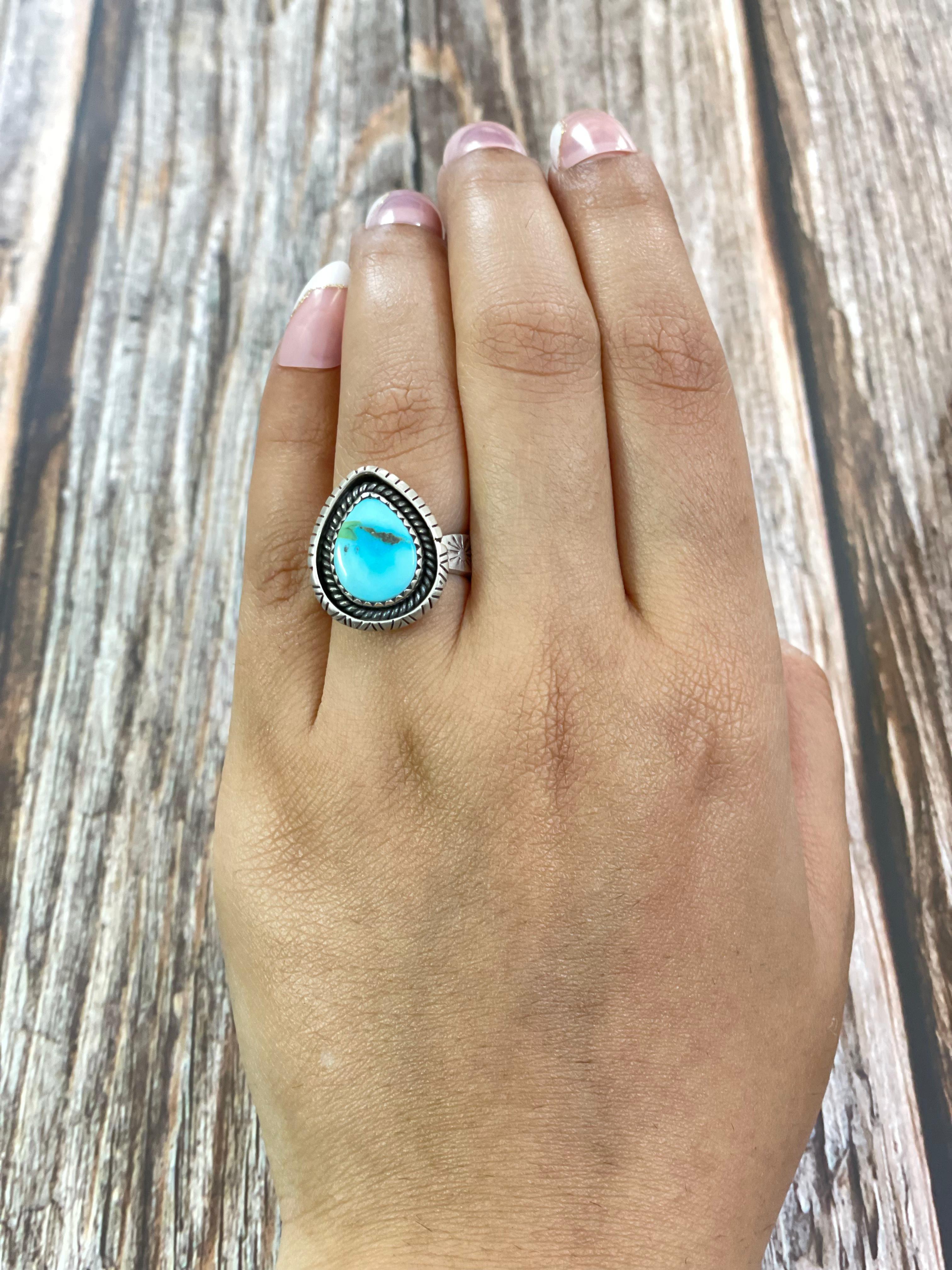 Southwest Made South Hill Turquoise & Sterling Silver Adjustable Ring