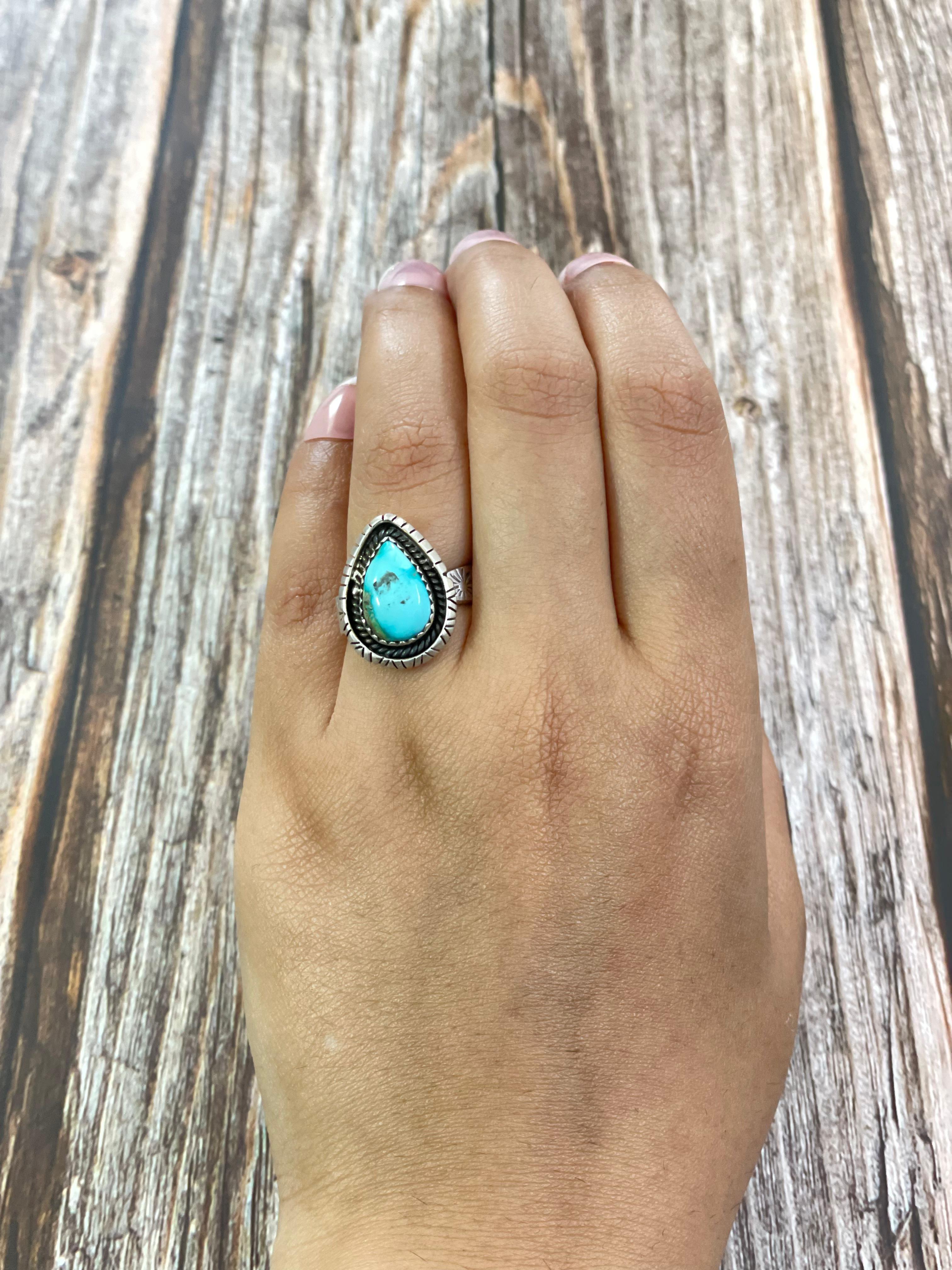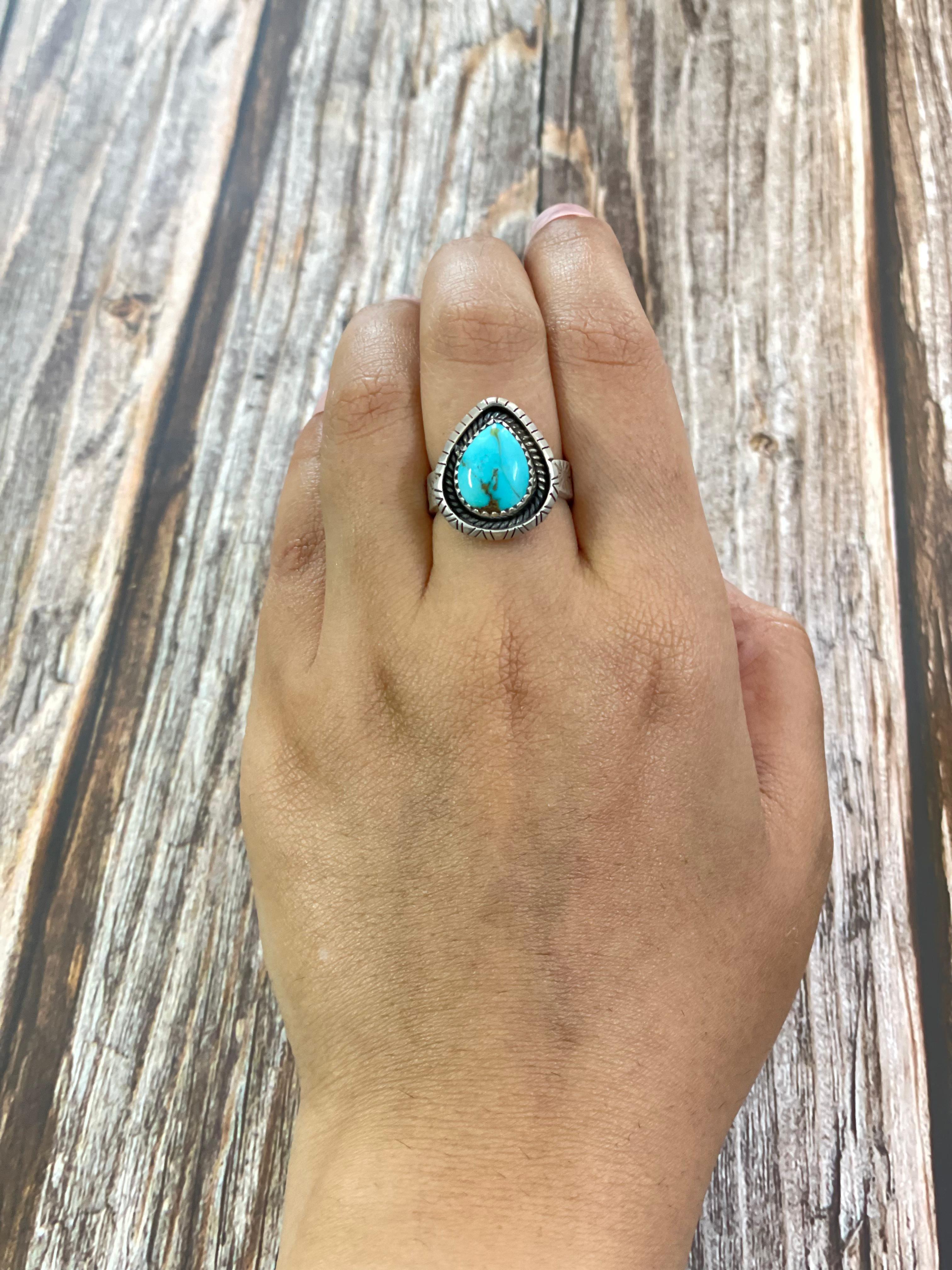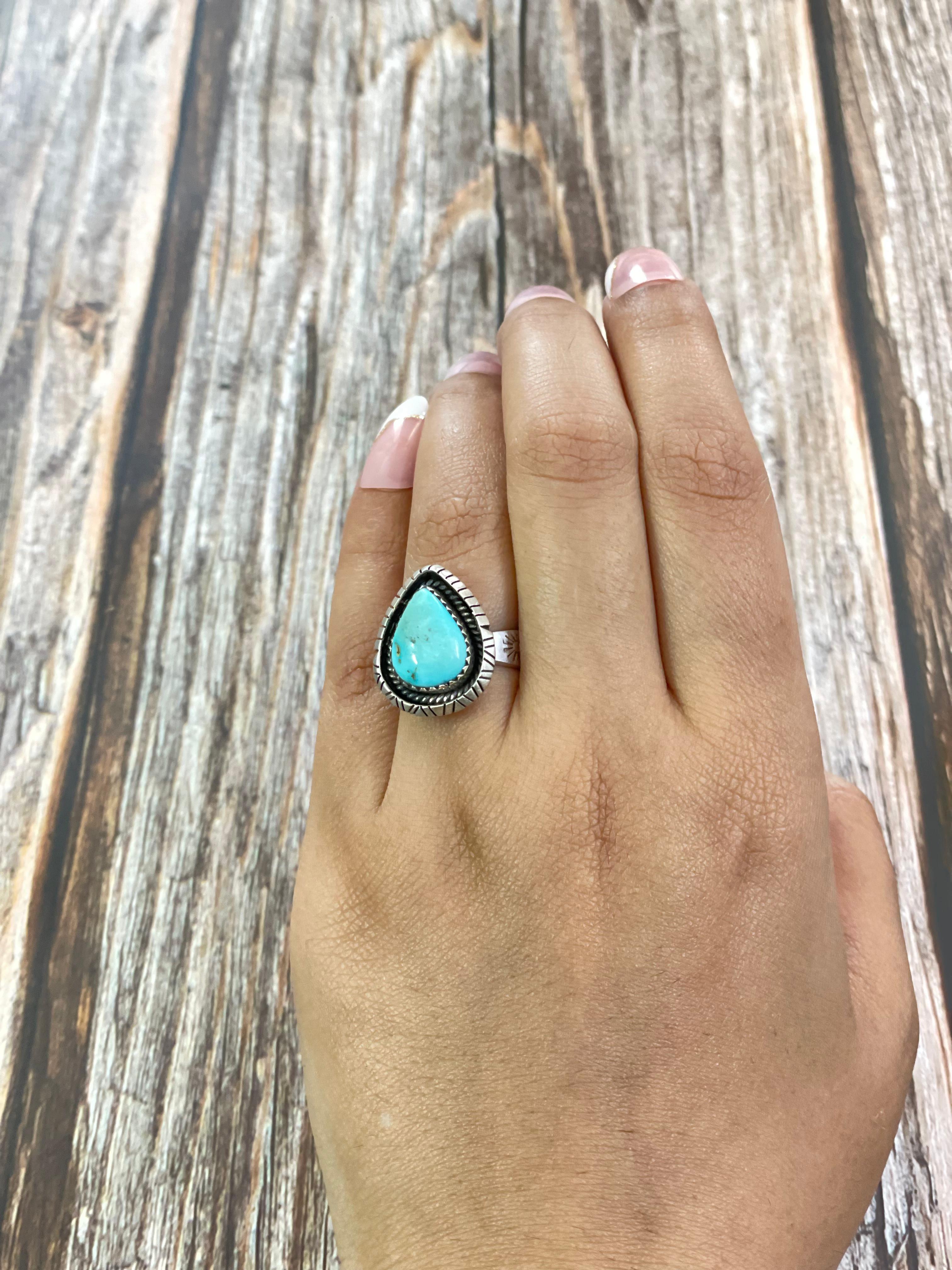 Southwest Made South Hill Turquoise & Sterling Silver Adjustable Ring