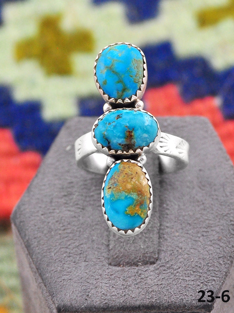Southwest Made South Hill Turquoise & Sterling Silver Adjustable Ring