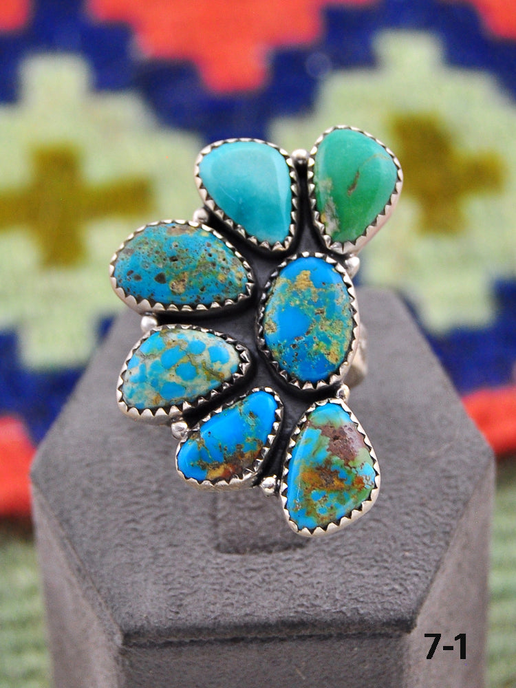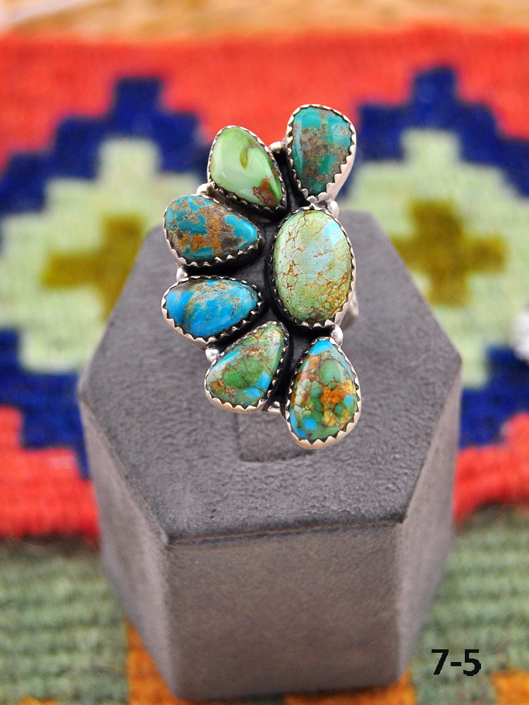 Southwest Made South Hill Turquoise & Sterling Silver Adjustable Ring