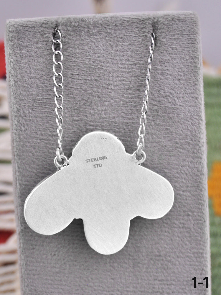 Southwest Made Golden Hill’s Turquoise & Sterling Silver Necklace. It measures 20 inches long with hang while the chain measures 18 inches long. Signed by the artist and stamped sterling silver.