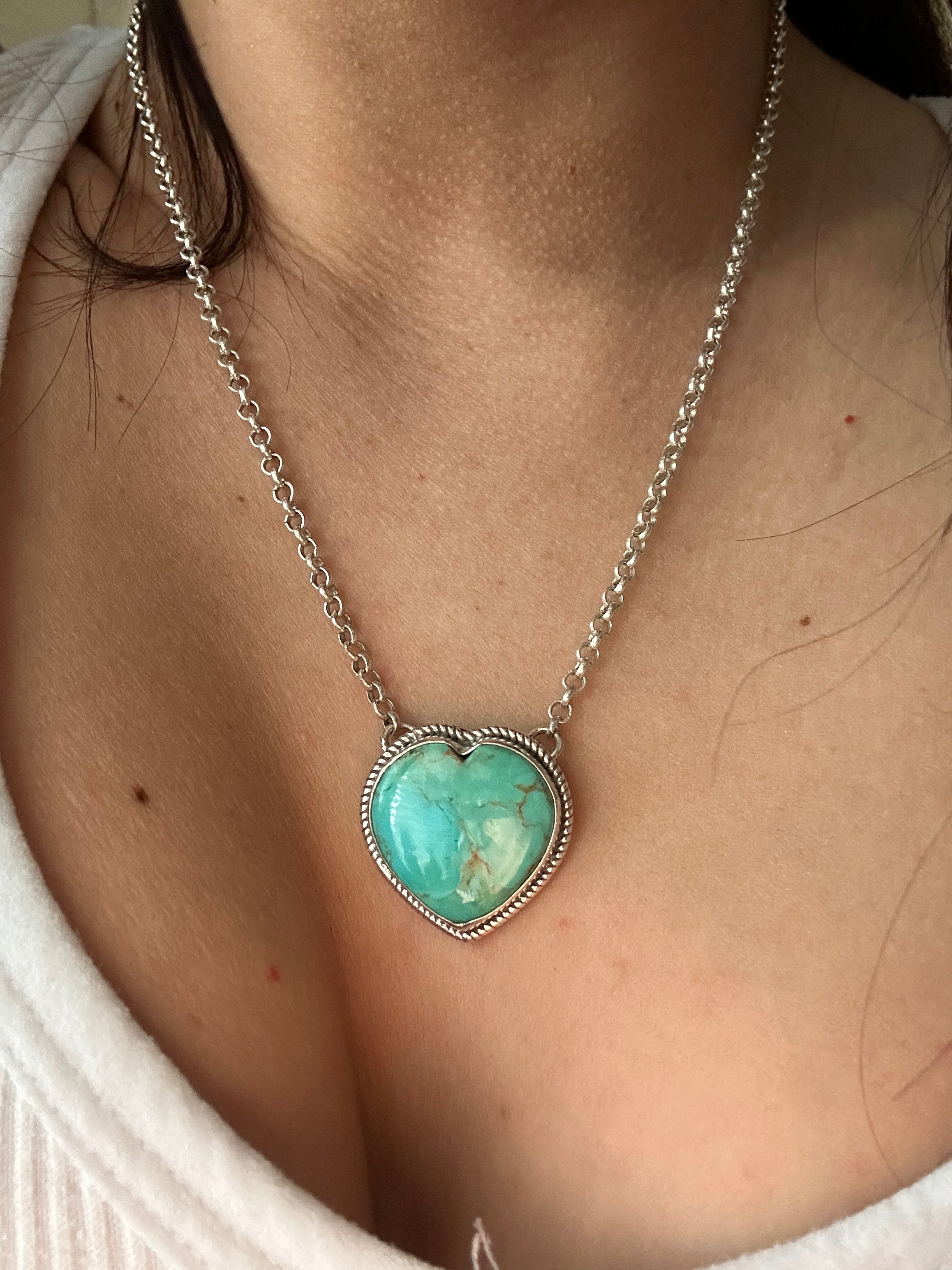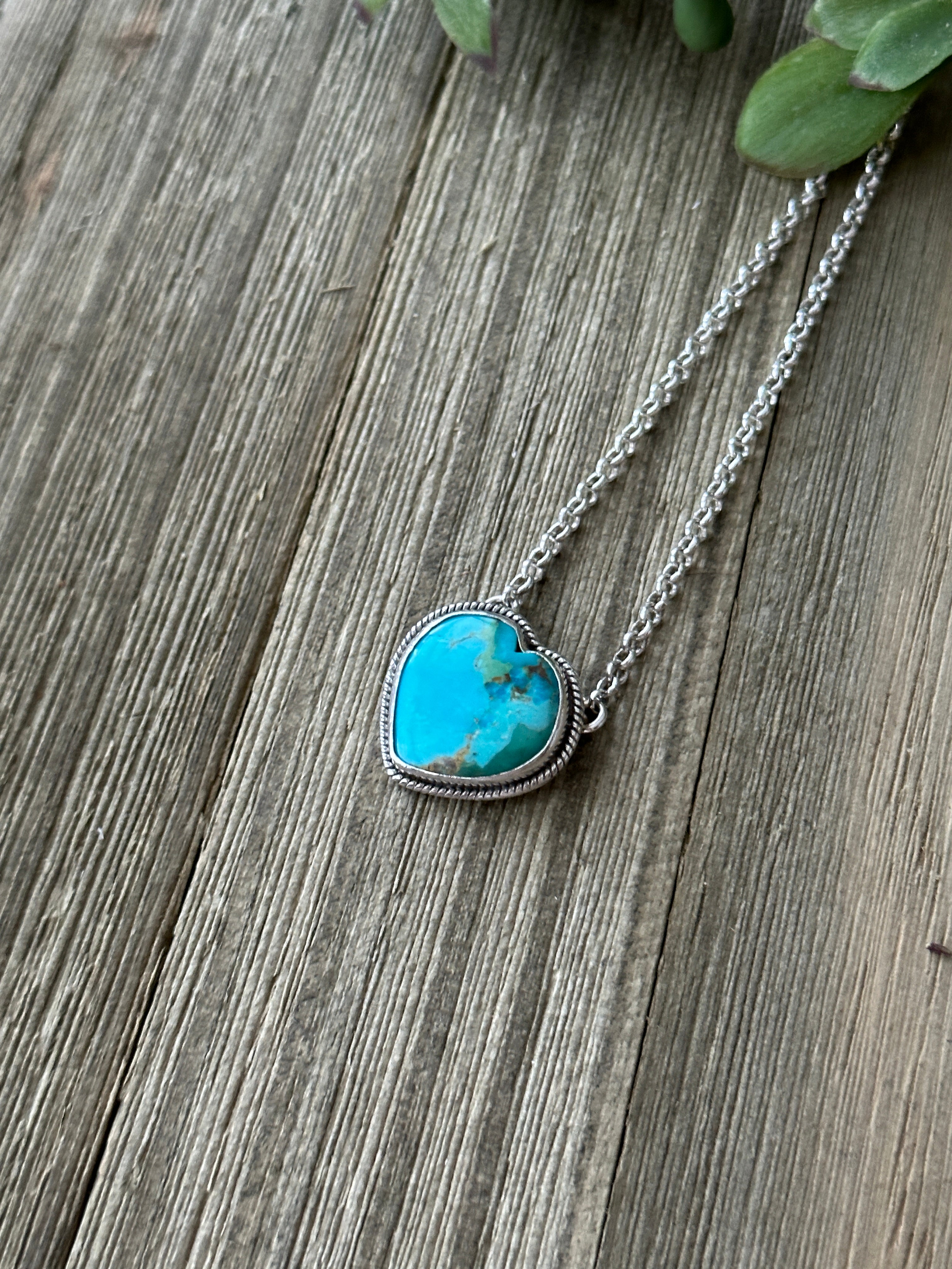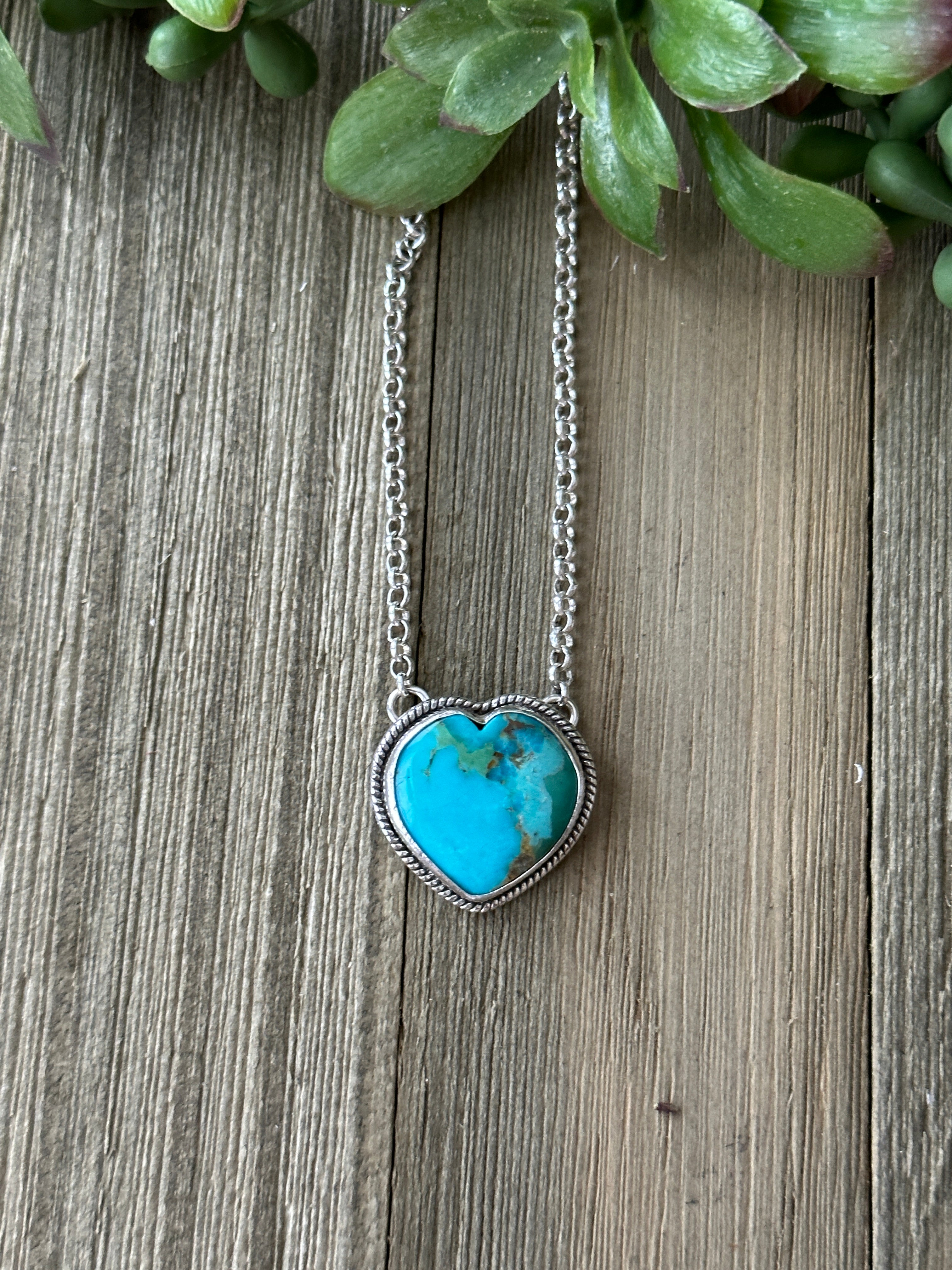 Southwest Made Turquoise & Sterling Silver Heart Necklace
