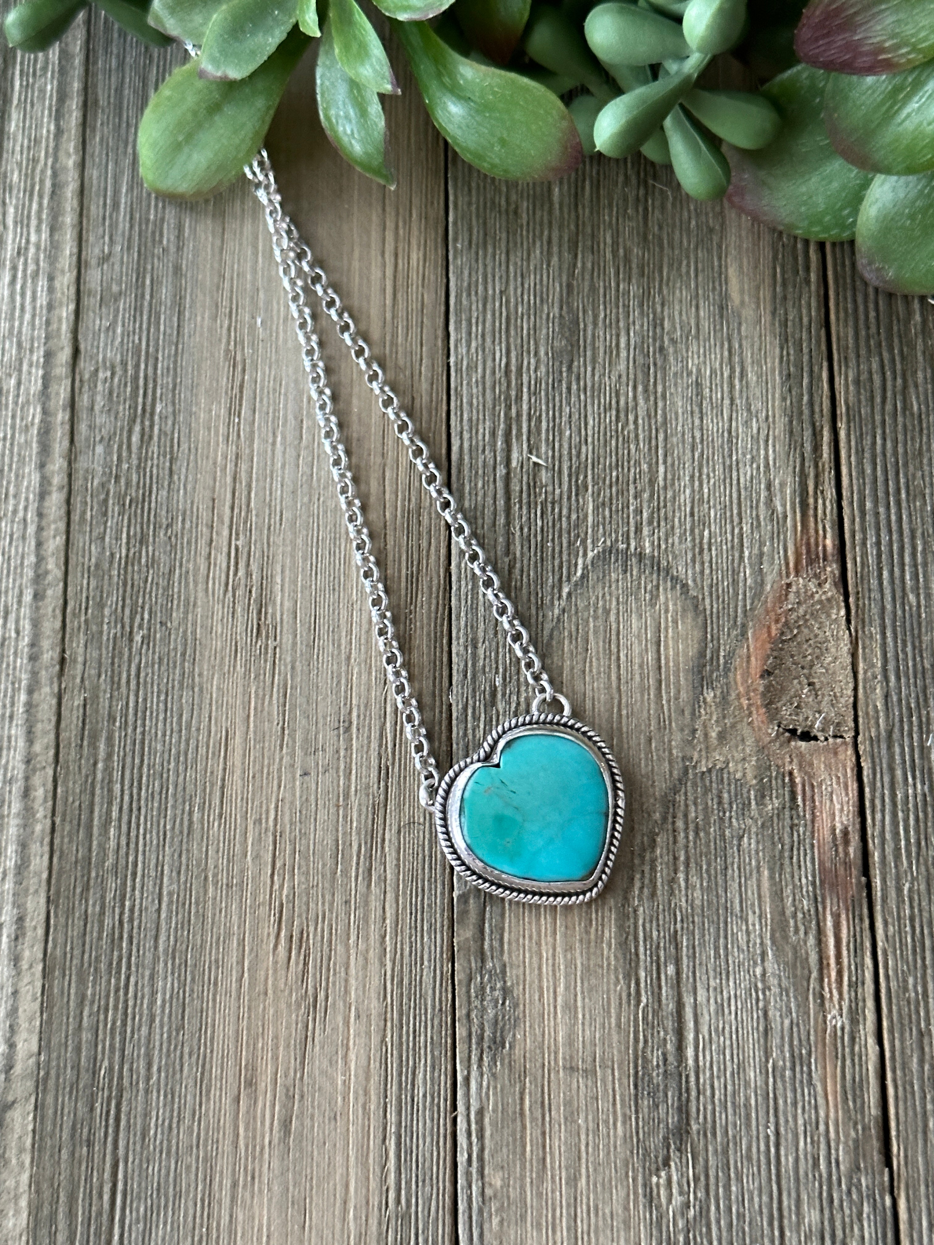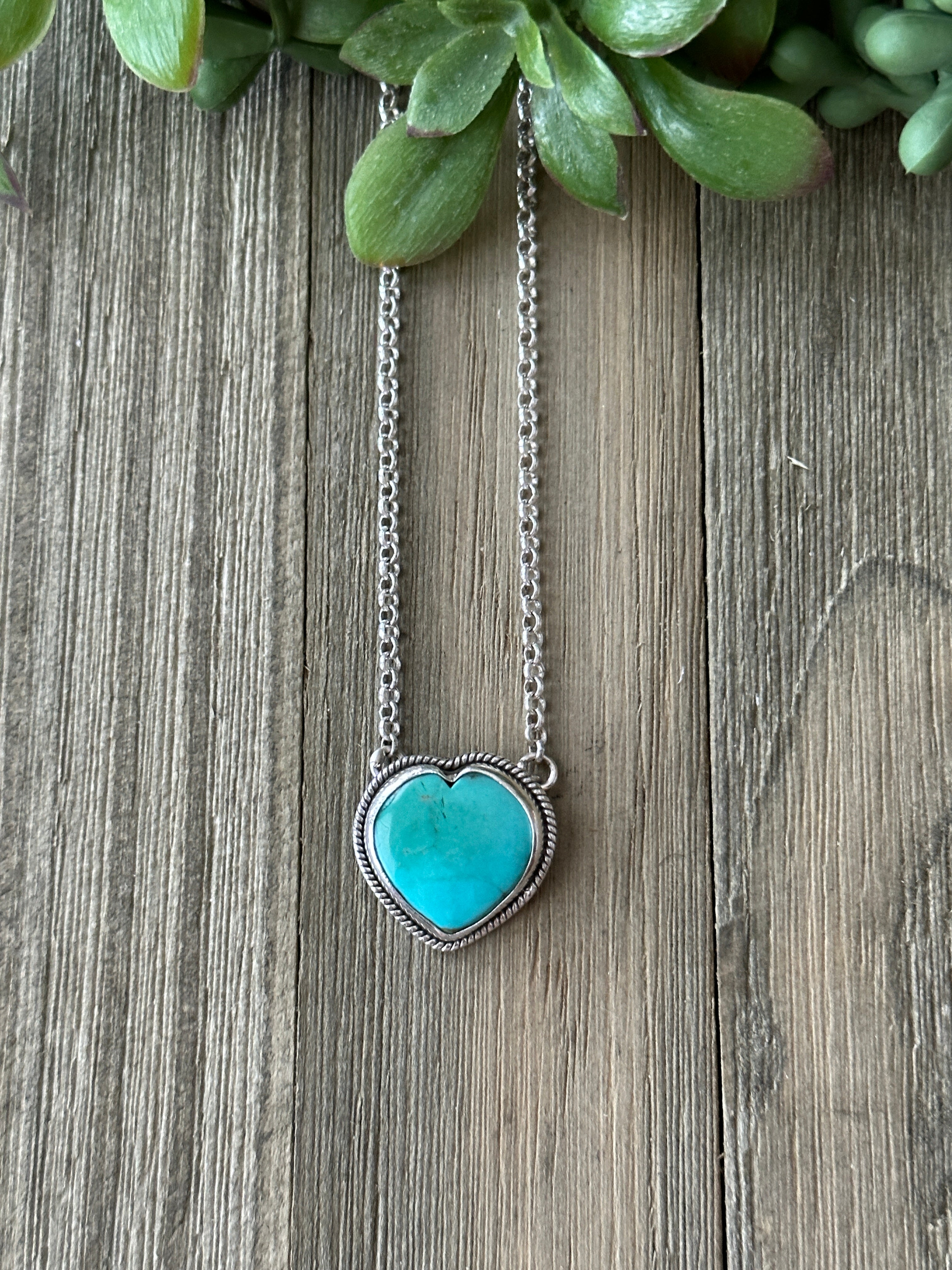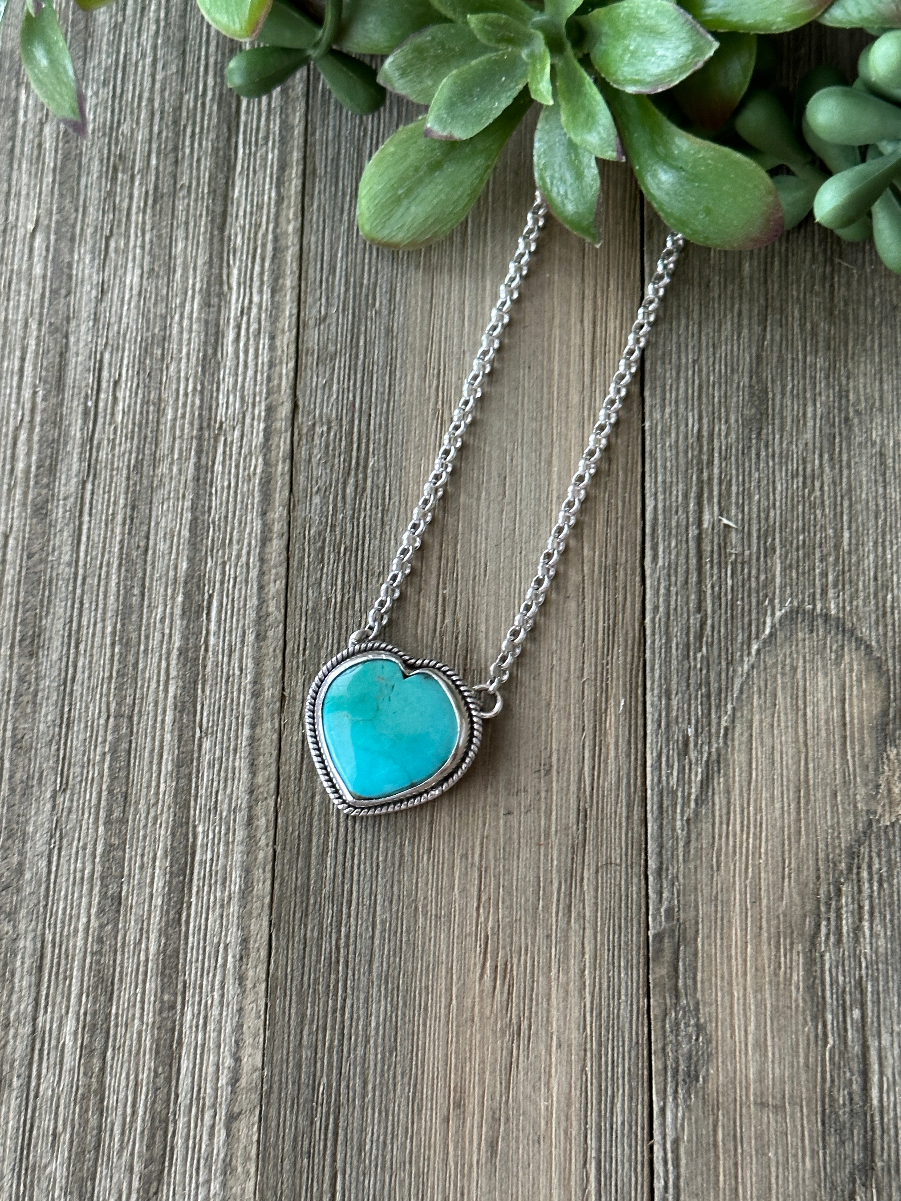 Southwest Made Turquoise & Sterling Silver Heart Necklace