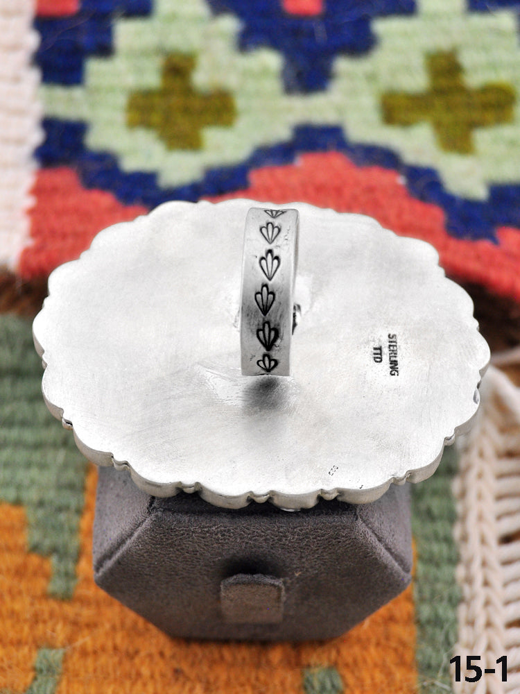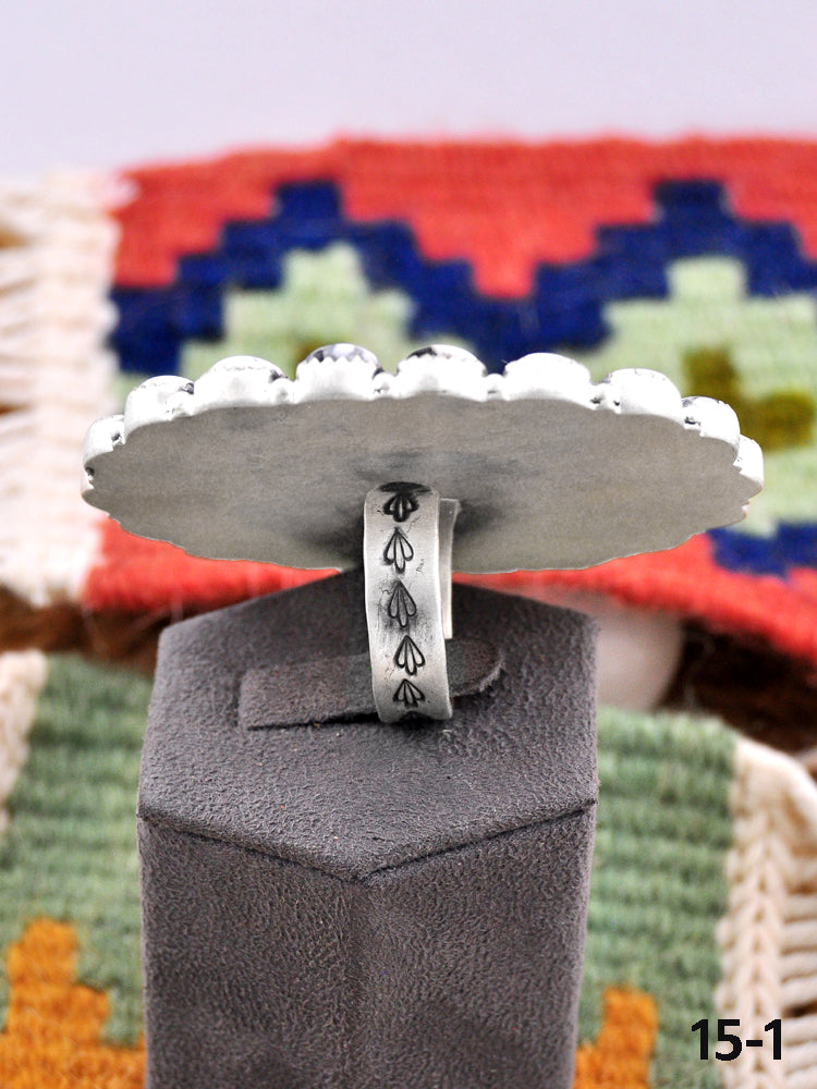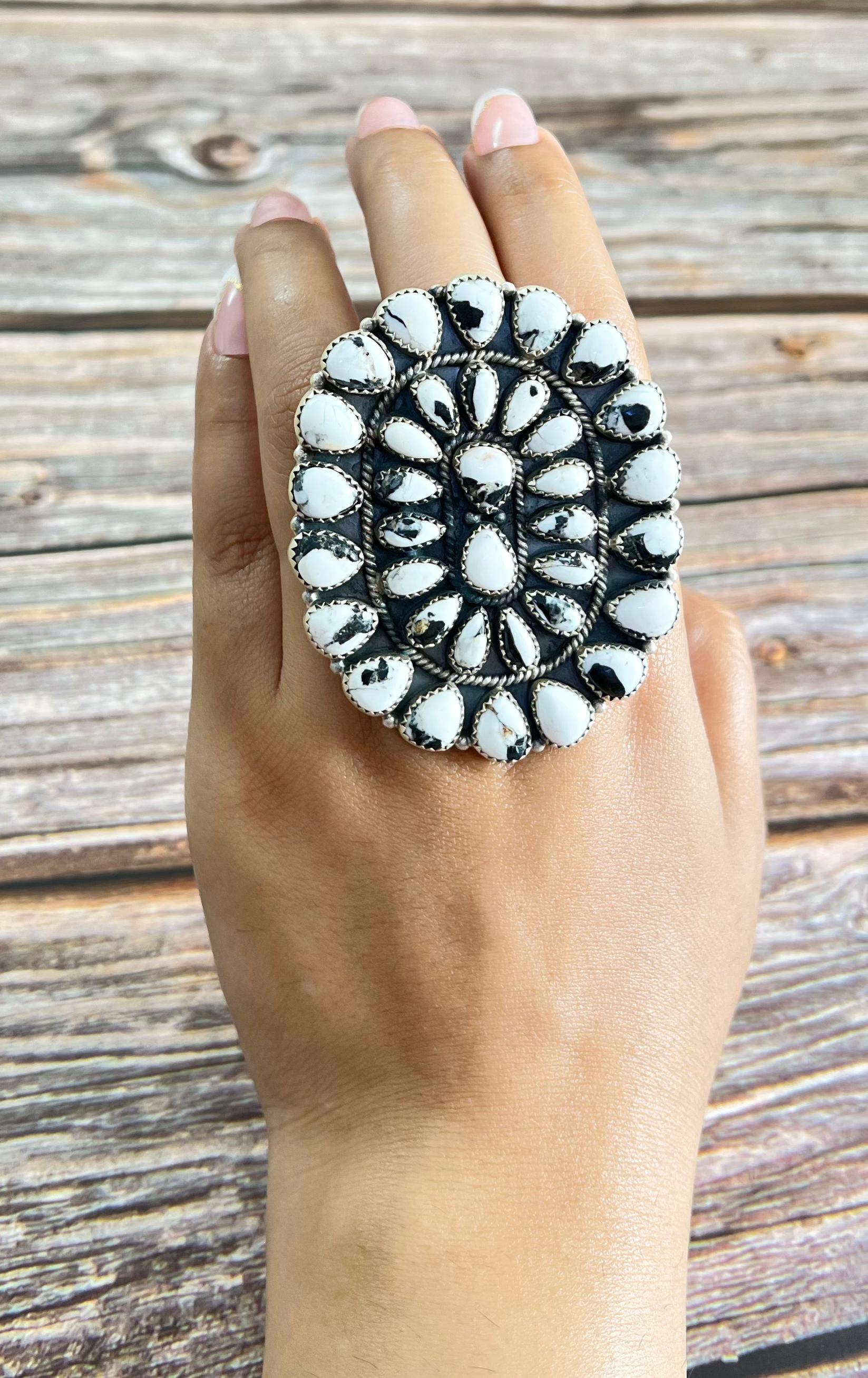 Southwest Made White Buffalo & Sterling Silver Cluster Adjustable Ring