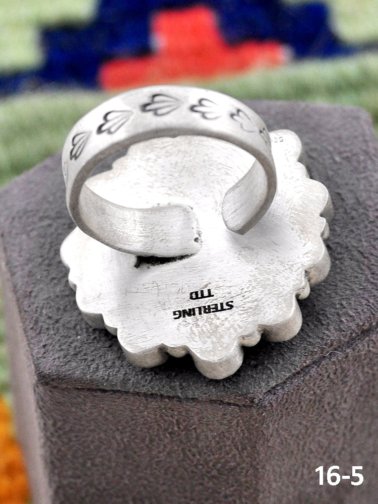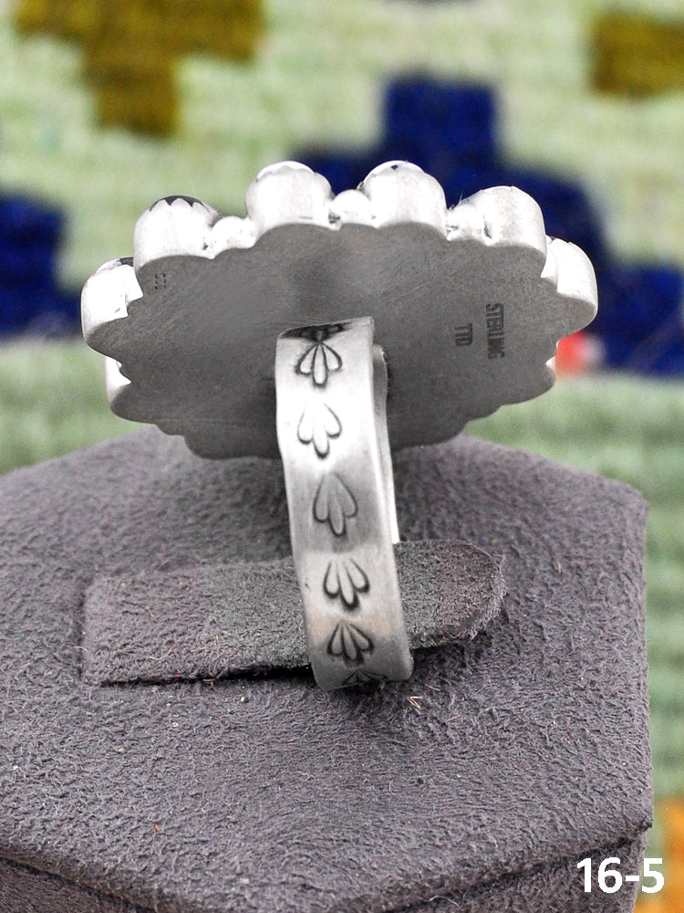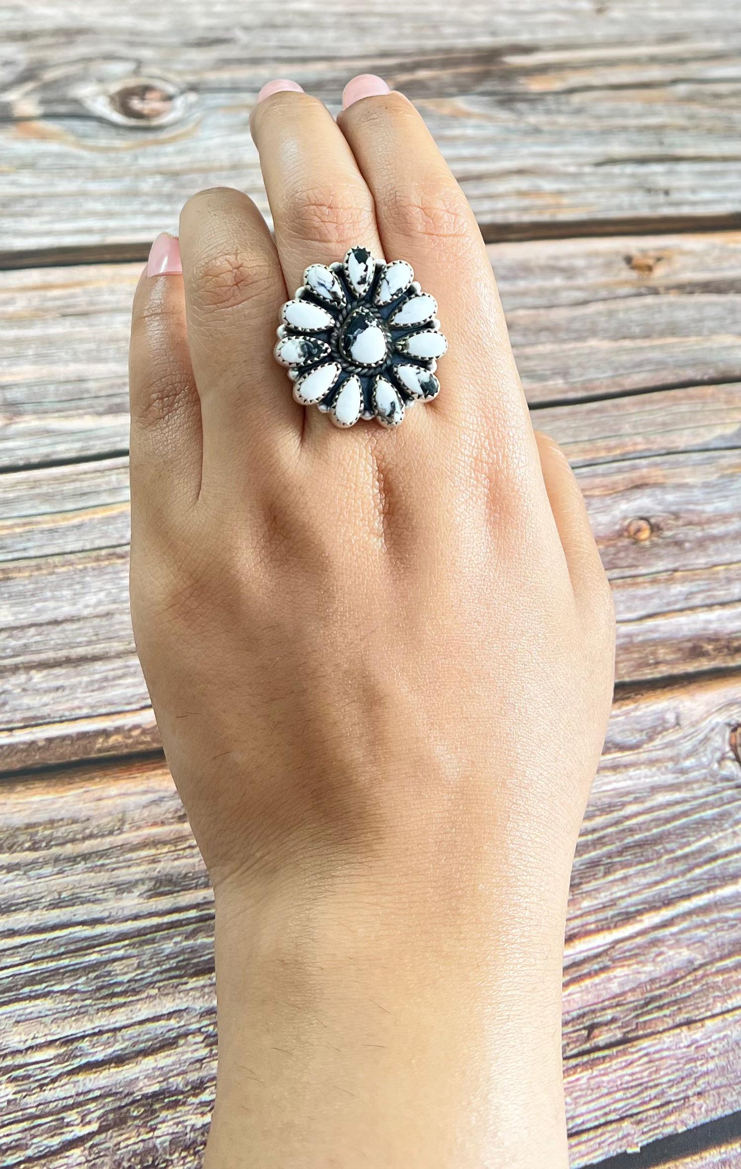 Southwest Made White Buffalo & Sterling Sliver Adjustable Ring. It measures 1 1/4 inches long and 1 1/4 inches wide.
