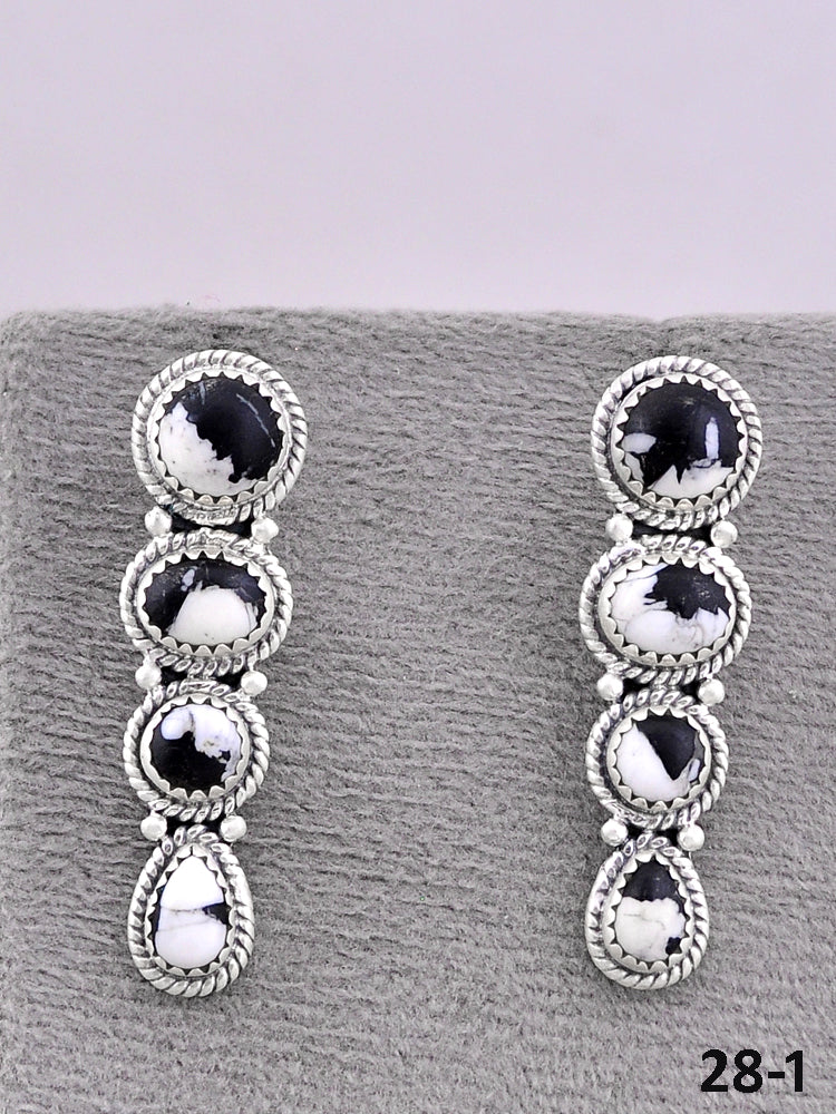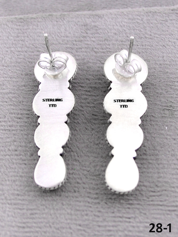 Southwest Made White Buffalo & Sterling Silver Post Earrings. It measures 1 1/8 inches long and 3/8 of an inch wide. Stamped and signed.