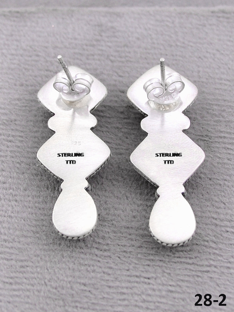 Southwest Made White Buffalo & Sterling Silver Post Earrings. It measures 1 3/8 inches long and 5/8 of an inch wide. Stamped and signed.