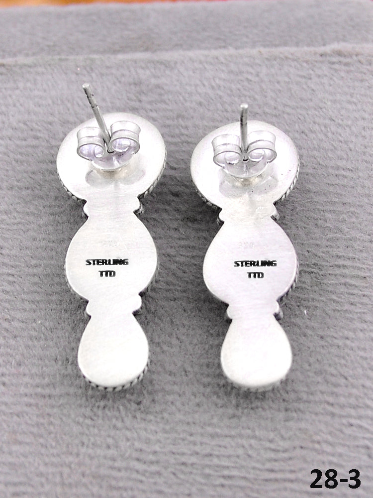 Southwest Made White Buffalo & Sterling Silver Post Earrings. It measures 1 1/8 inches long and 5/8 of an inch wide. Stamped and signed.