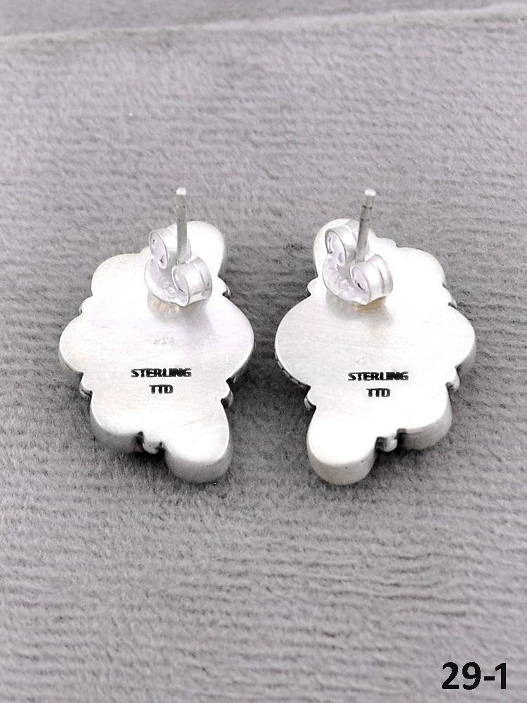 Southwest Made White Buffalo & Sterling Silver Post Earrings. It measures 7/8 inches long and 7/8 of an inch wide. Stamped and signed.